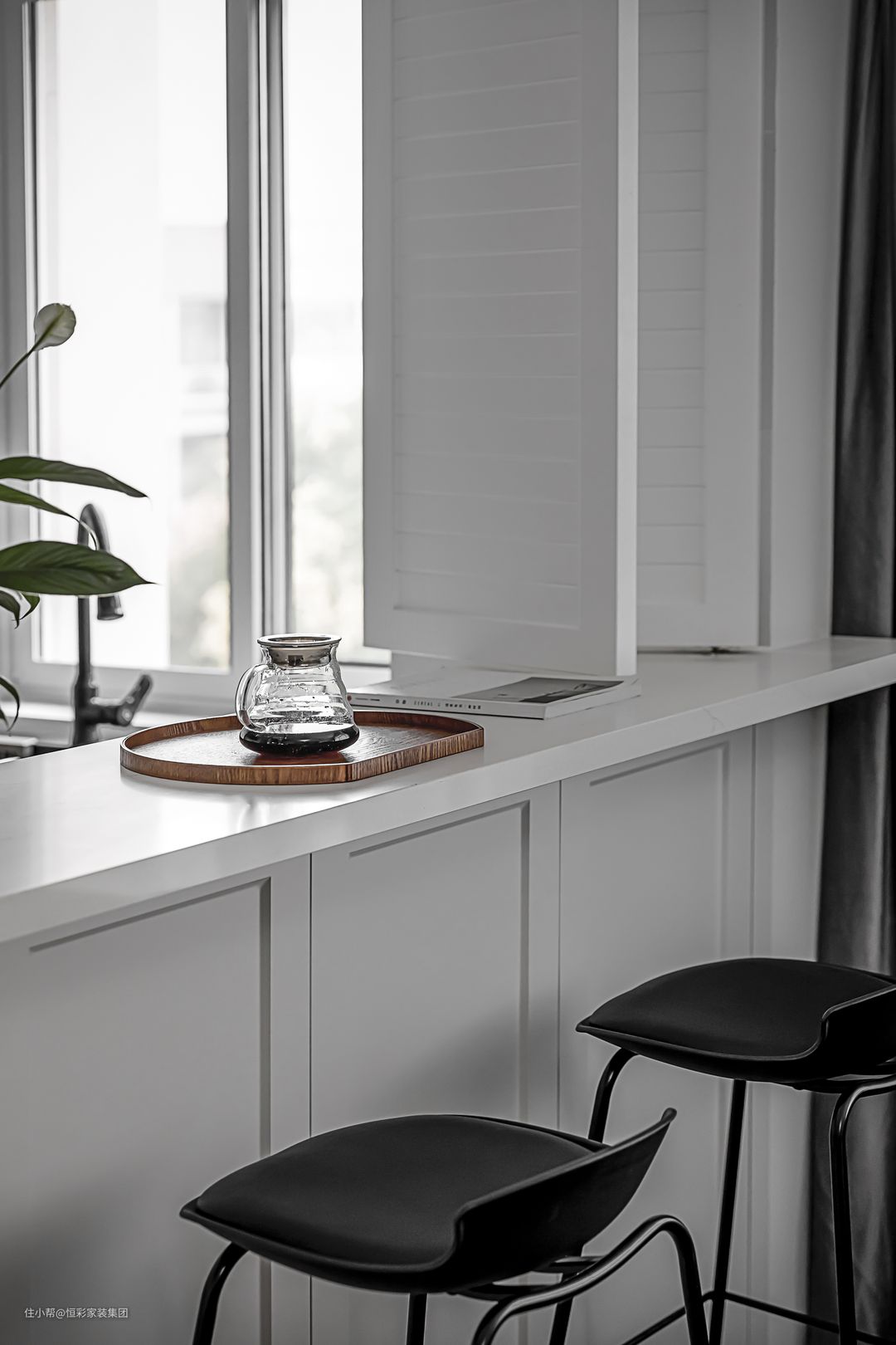 客厅飘窗保留,日常可作为休闲区域。客厅与厨房之间的吧台设计,促进了客厅与厨房的空间交流,贴心照顾到生活的每一个细节。