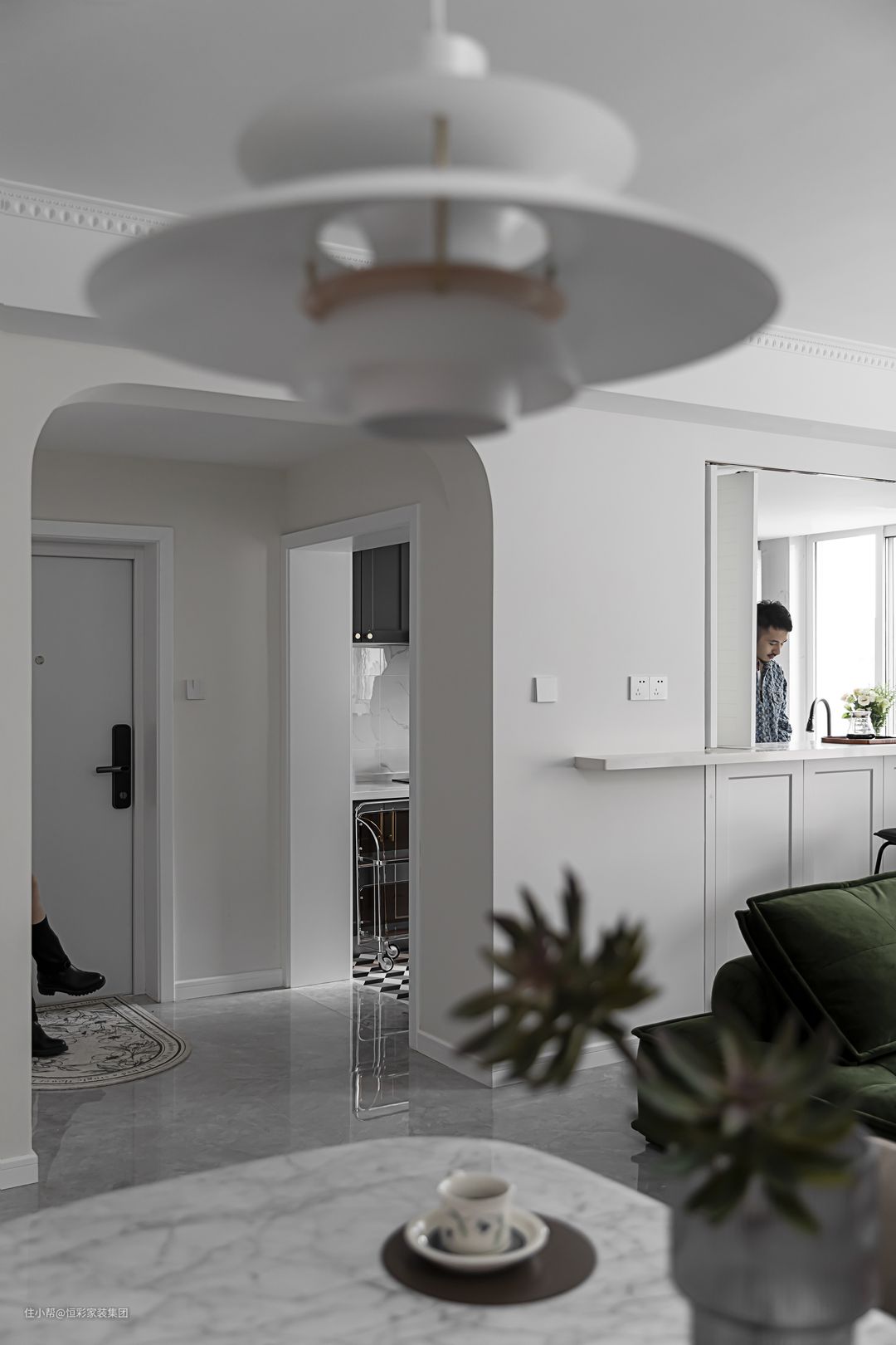 玄关门厅处做了一个拱形门设计,增加了入户门的仪式感,充分展示了小法式风格的优雅矜贵,让家充满仪式感。