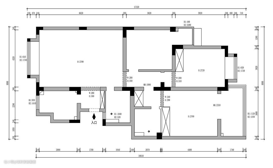 三个卧室房门位置的调整,延长了过道空间。拱形门的设计,为空间过度增加了法式风格的仪式感。