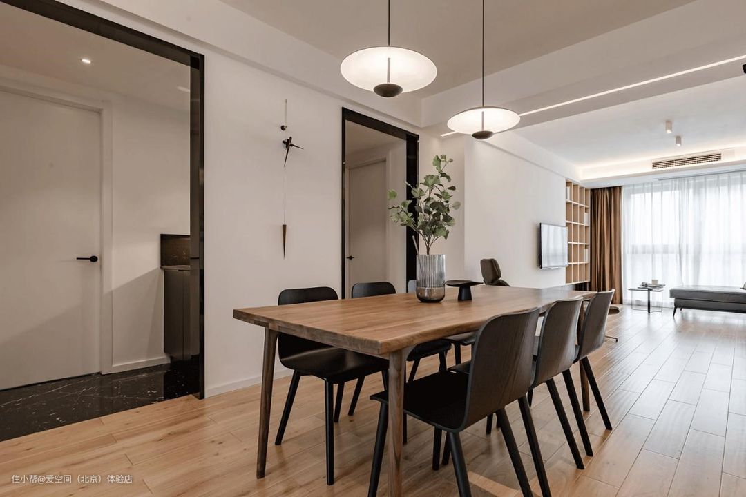 餐厅采取时下流行的客餐一体设计手法,同时延续了客厅简洁清爽的风格,呈现出通透、连续的空间效果。