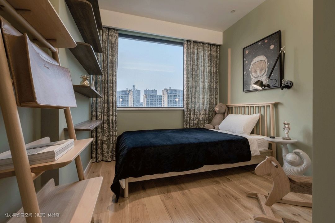 孩子虽小,但也需要有自己的空间和私人世界,屋主根据小王子的喜好,将背景墙设计成浅绿色,非常清新,如沐春风的感觉,木马、玩偶,为孩子勾勒出乌托邦式的梦幻与自由,孩子的快乐,就是这么简单。