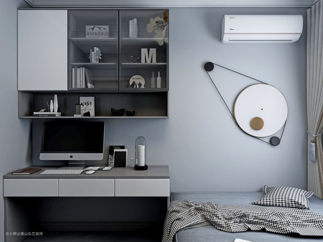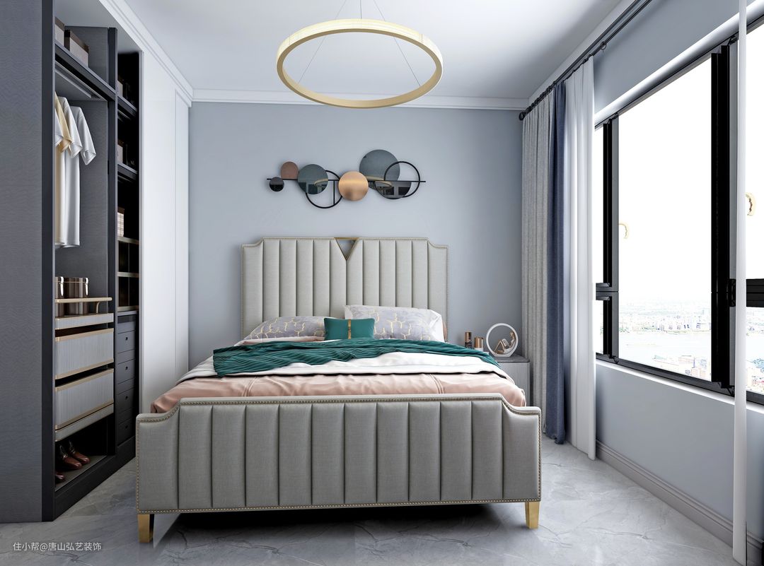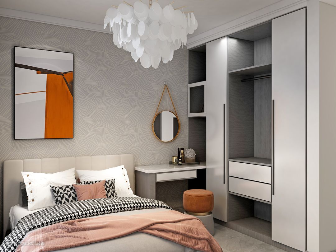 次卧室,要满足整体空间的情况下,多增加储物性,所以舍弃了床头柜,来让空间的压力得到释放