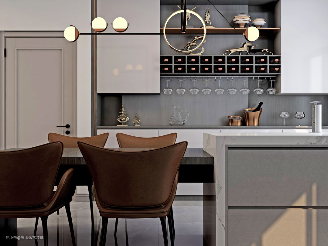 餐桌选用一体定制边岛餐桌,1.为了让空间更加的合适,2为了让整体的餐厅空间更加灵动