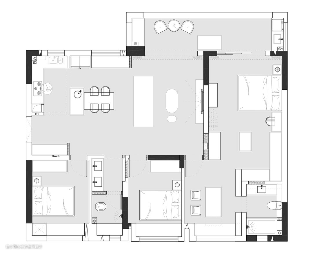 1、装修过程花了多长时间? 差不多一年时间 2、你对这套作品最满意的地方在哪里,为什么? 后期的整体软装搭配,因为前期所做效果图很后期的实际软装落地还是有很大不一样,但是后期实际的软装落地下来,比效果图更好看 3、对平面布局做了哪些优化改动,为什么? 公共空间厨房、餐厅与客厅的关系,厨房半开放式的处理,主卧与书房之间的关系 4、在整个装修设计期间遇到最大的挑战是什么? 都还比较顺利 5、回头再看这套房子,设计当中有什么遗憾的地方吗? 最遗憾的是阳台的窗帘问题,因为本身结构是一个非常大的长阳台,没有满足落地大玻璃的视觉感,其次是阳台没有考虑好竖百叶帘的安装问题