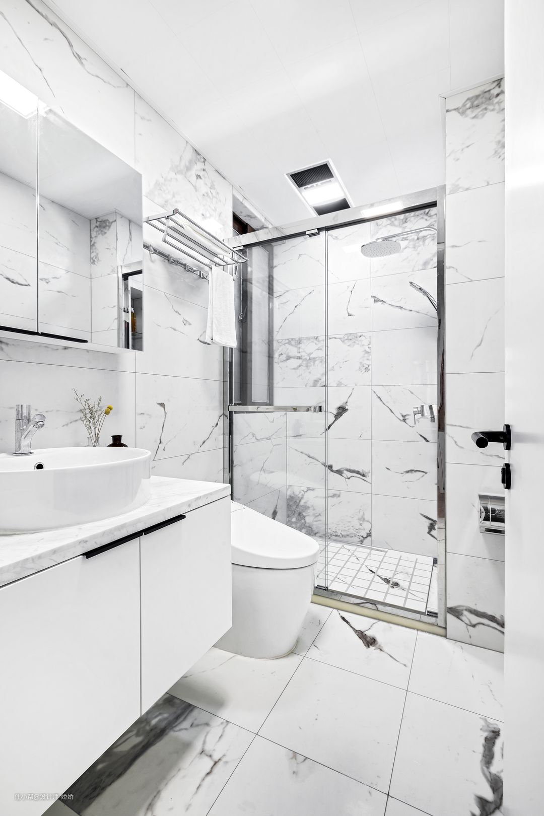 关于色调,业主希望最终效果是可以让空间显得开阔明亮不局促,但是也不能太冰冷,需要有家的温馨感。所以我们选用白调为主,黑色线条做点缀,黄色块面柔化黑白灰的冰冷。