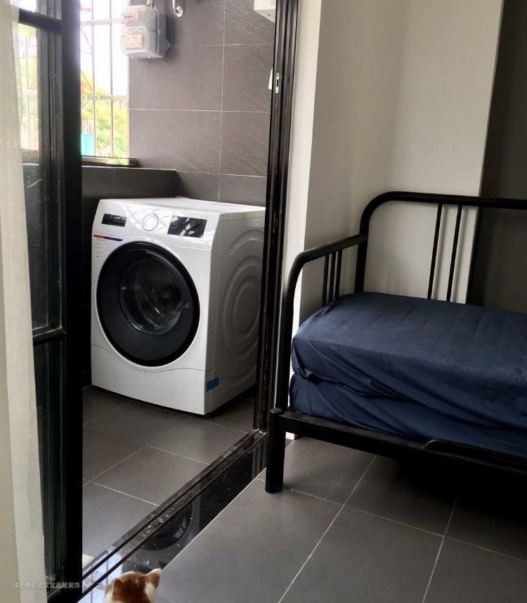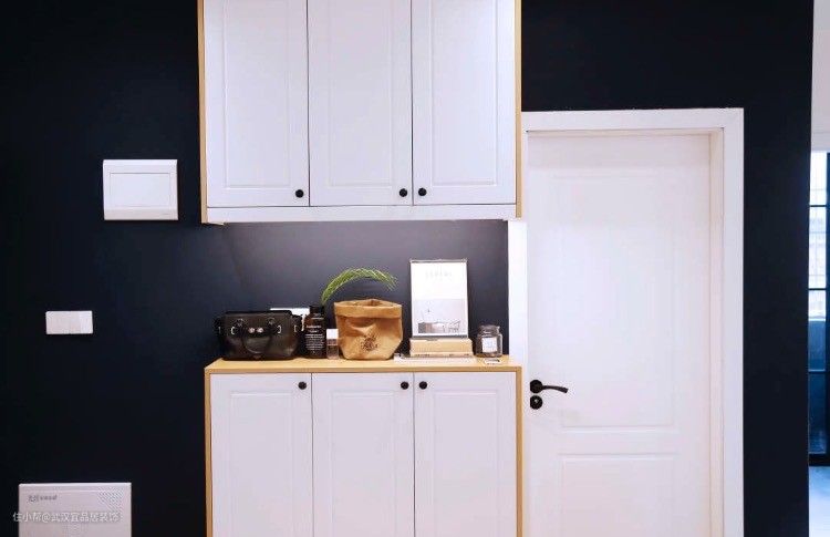 入户处刷了一面深蓝色的墙,搭配白色鞋柜门,强烈的对比感,改造后的客厅,同角度拍摄对比图。阳台改成开放式厨房了,与客厅共享大面窗户。全屋无主灯设计,沙发墙因为懒至今还没挂装饰画,暂时用射灯光斑装饰。