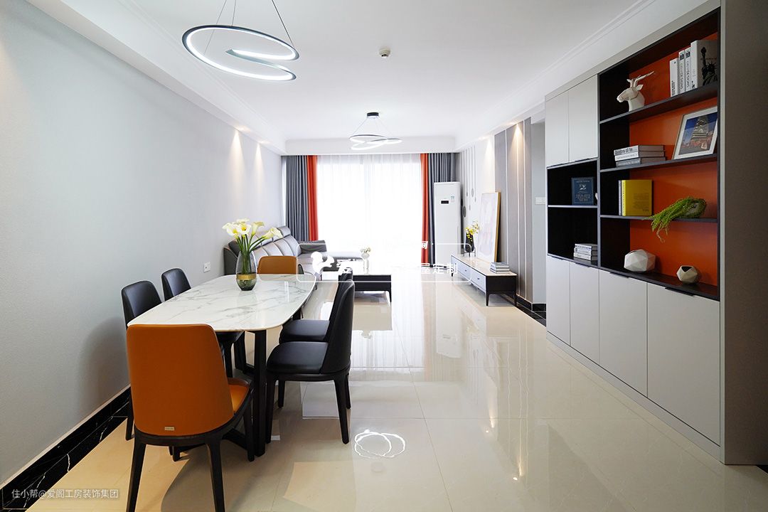 餐厅是味蕾的乐园,也是低调与奢华交织的灵感空间。天然肌理的大理石餐桌,搭配充满张力的皮纹餐椅,刚好和餐边柜呼应了质感和色调,给空间一种自然美感,营造温馨怡人的用餐氛围。