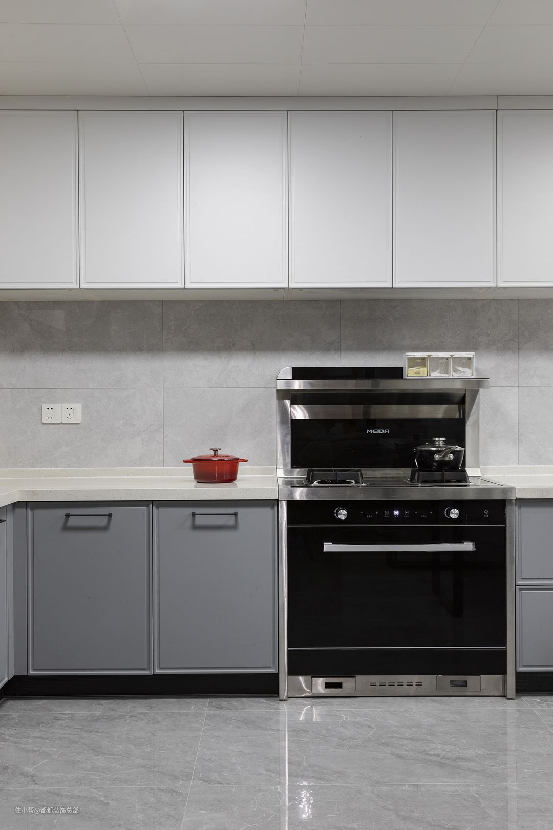 整体白色开放式厨房,橱柜顶天立地,嵌入各种电器,与白色墙体融合在一起,视觉空间毫无压抑感,岛台的不仅可当做操作台,还可以用餐,简单大气。#你家厨房长啥样?