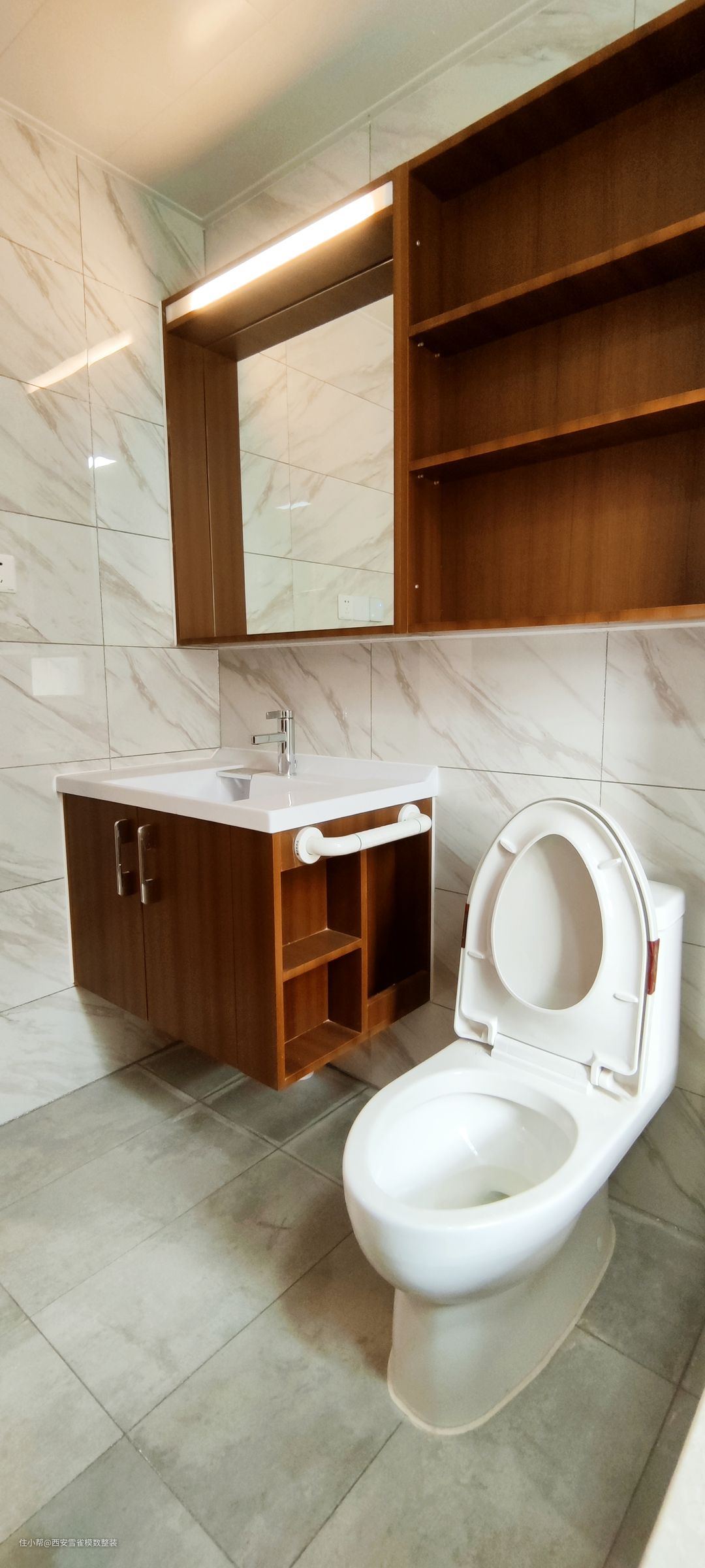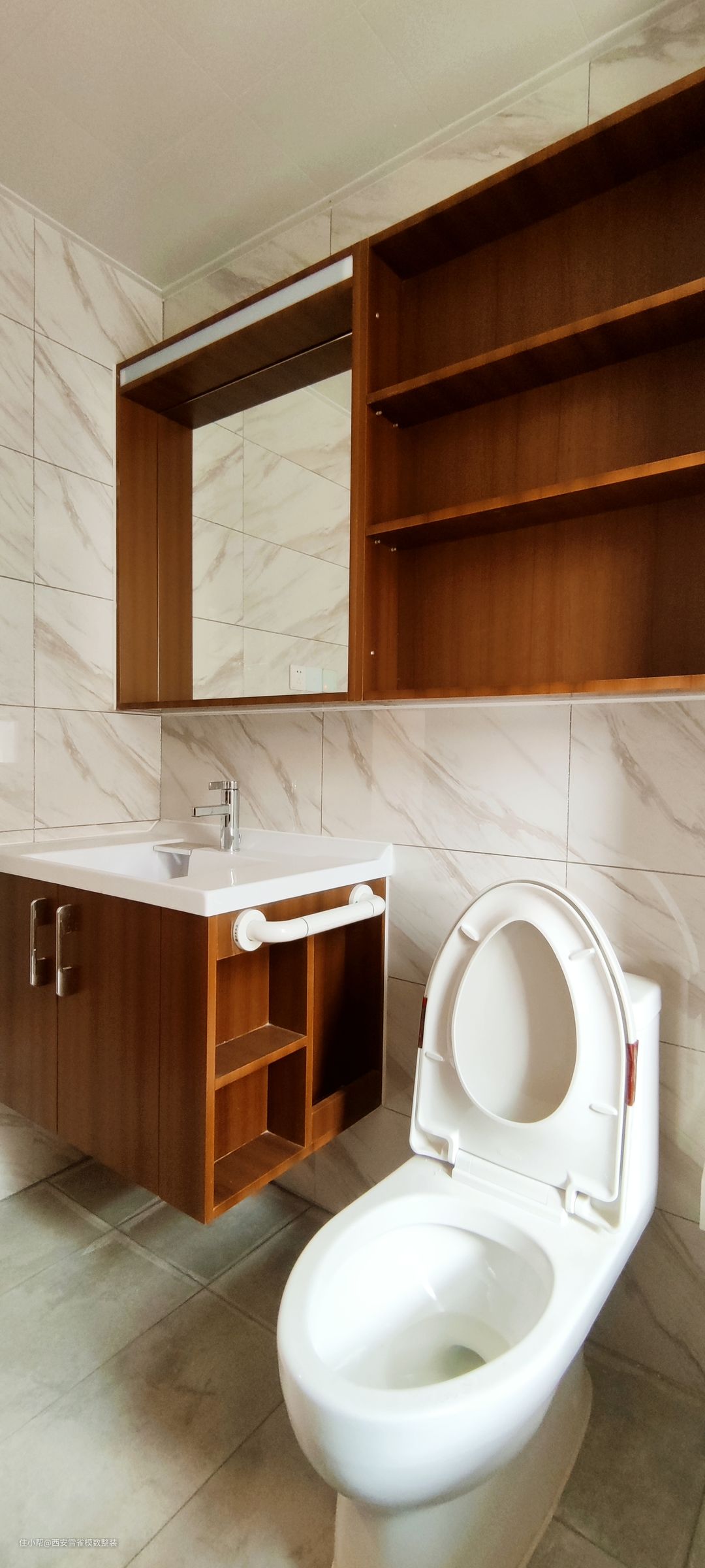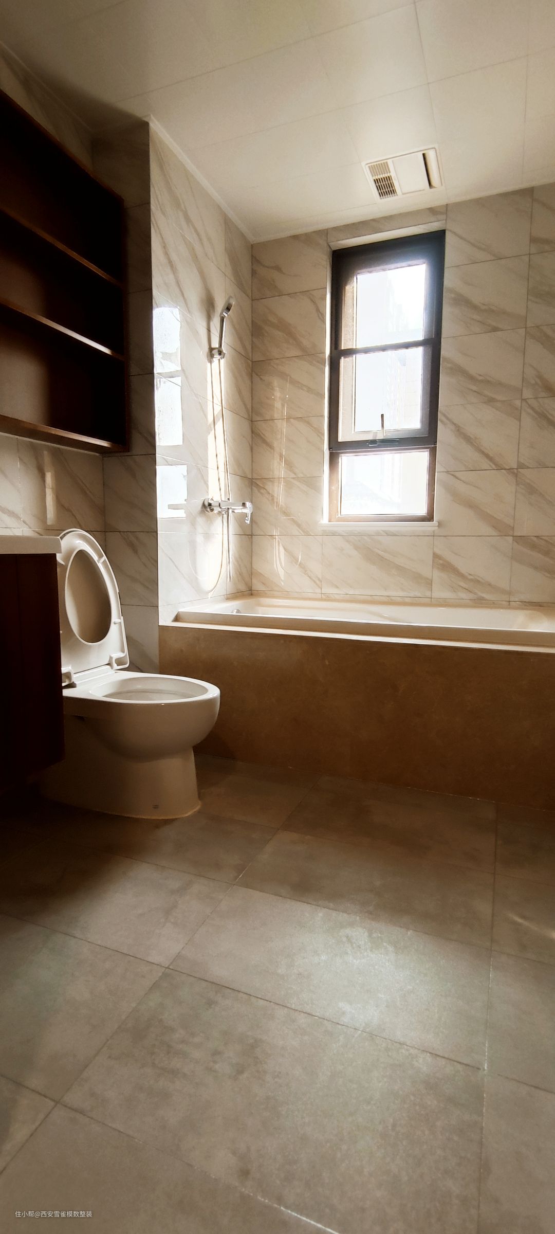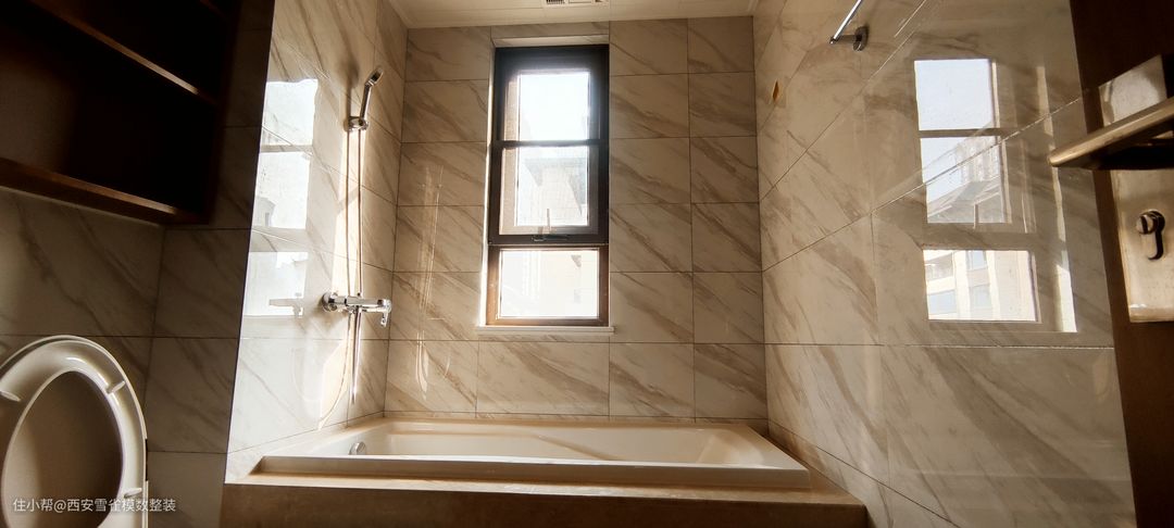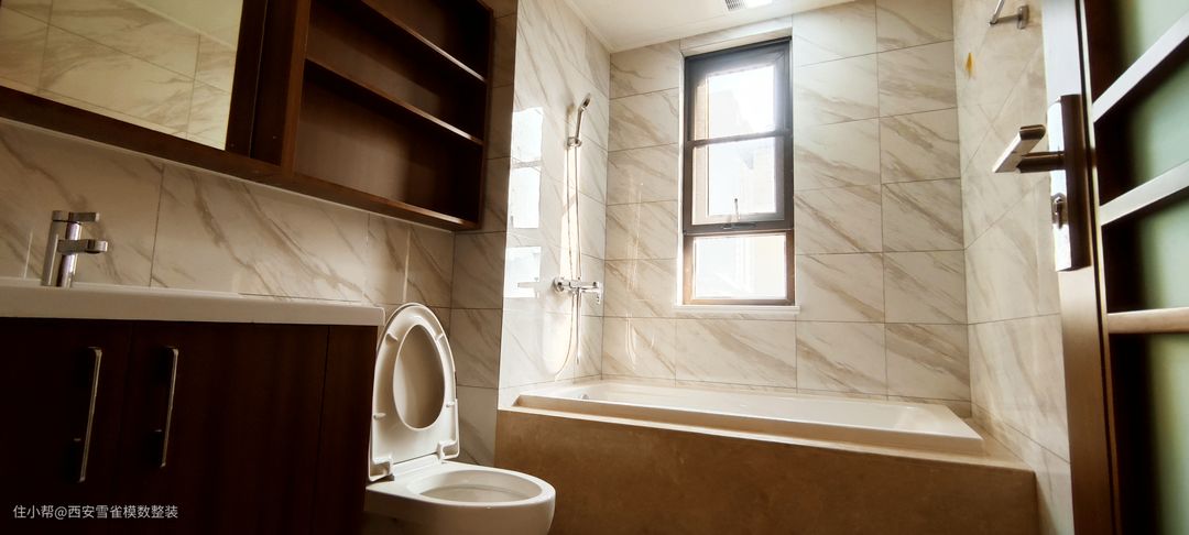 来了来了来了!最喜欢的卫生间来了! 这个卫生间的采光是非常非常的好的,我们设计师在设计的时候,根据采光选择了相对应材质的瓷砖,整体出现的效果是非常震撼的。