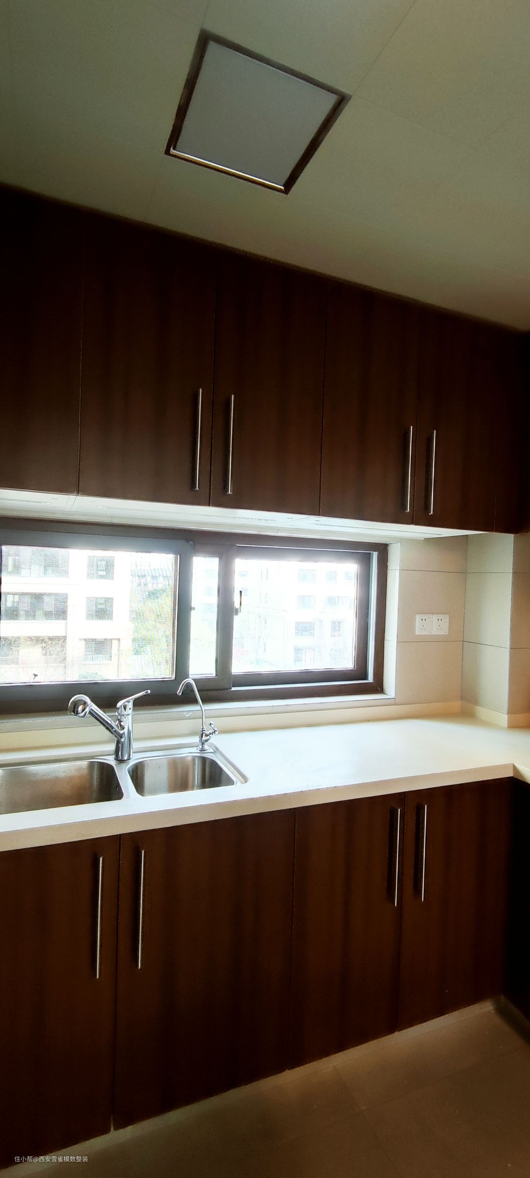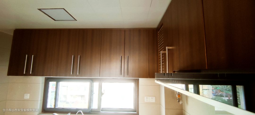 保利天悦143㎡户型中厨房是相对合适的,从洗切炒动线开始是非常合理的。 而我们在做定制橱柜的时候,首先对应的就是这个非常人性化的窗户,在做吊柜的时候可以将空间的使用率提升到非常难以想象的程度,让我们的收纳整洁度提升不止一个档次。 奈何我的拍摄技术有限,无法将整个厨房的效果体现出来,如果大家对这个户型感兴趣,下次我会找专业的摄影老师进行拍摄。