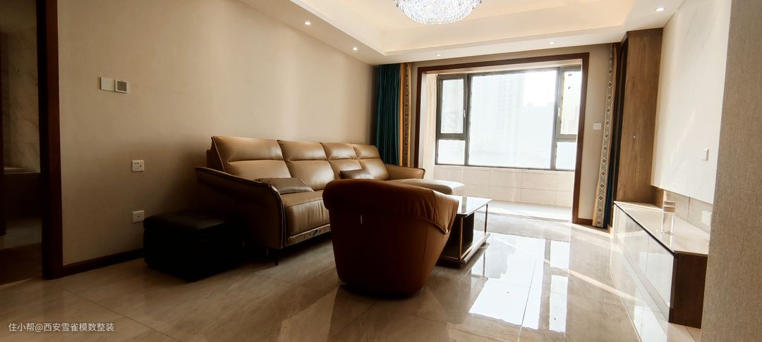 【户型解析】 本案例是西安保利天悦二期143㎡的三室两厅一厨两卫的一个标准户型 整体户型较为规整,是一个坐南朝北的户型,因为是在8号楼靠南边的最边上,所以采光方面相当的优秀。 同时,我们在与业主沟通的时候得知他们是一家5口人进行居住,那我们在对整个空间的设计与布局上,除了考虑动线的合理性,更多的是在收纳方面下了比较多的功夫。