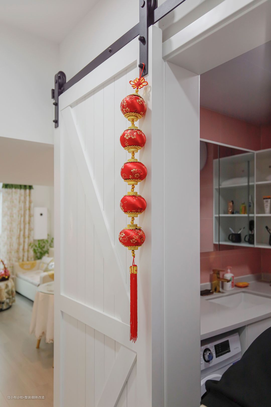 进门右手边就是卫生间啦!采用了轨道安装在上方的谷仓门设计
