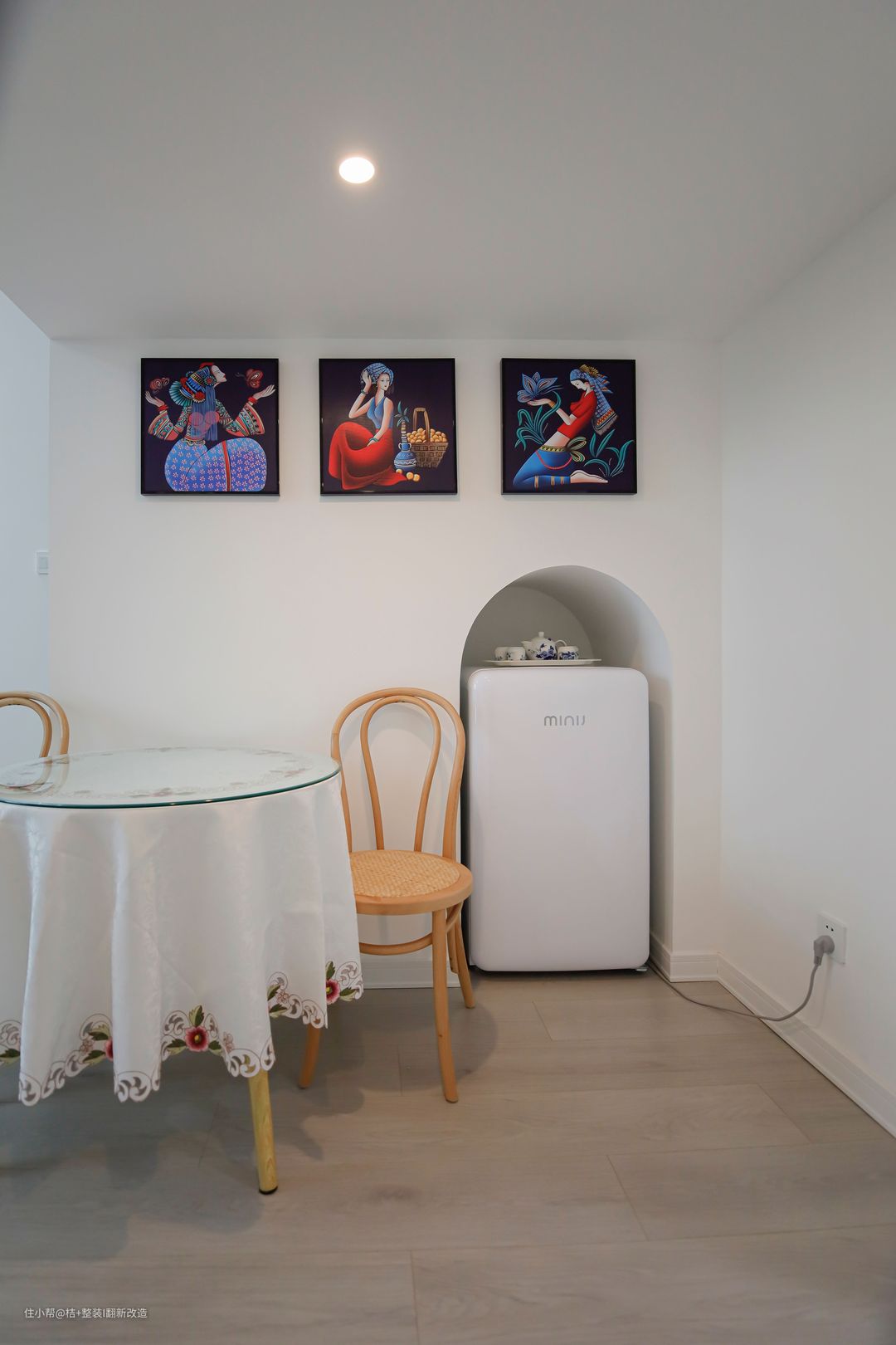 餐厅旁边“凿”出的一个半圆形墙洞,嵌入一个小型复古的mini冰箱。墙上三幅民族人物装饰挂画,让整个用餐过程多了一些地方风味、民族气息。