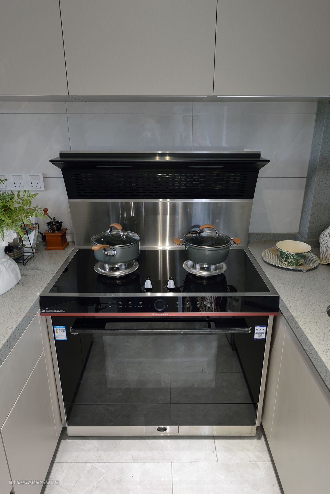 厨房做U型布局并且延伸搭配做吧台设计,动线布局合理,将烹饪与操作台做独立区域,做饭更方便快捷!上方做吊柜提高收纳,下方做抽拉柜并嵌入家电提高空间利用率!