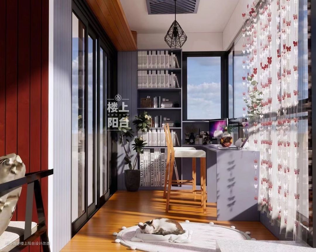 「阳台小书房」改为落地窗,包起来√,保护隐私,阻隔噪音,添置办公桌,升级为阳台小书房。可工作可看书,安安静静享受独处时光,
