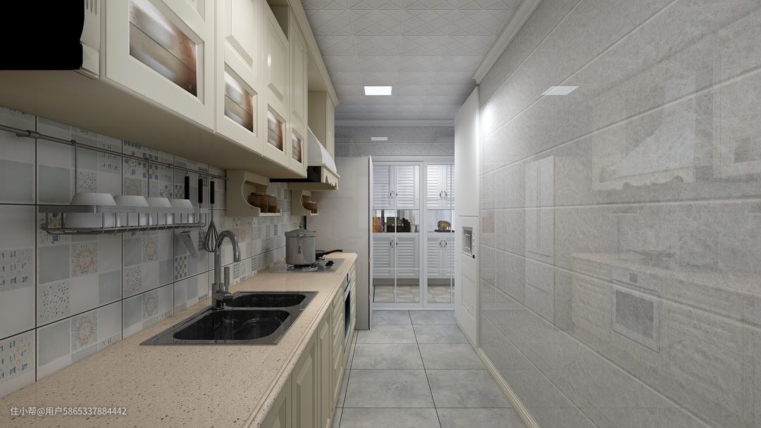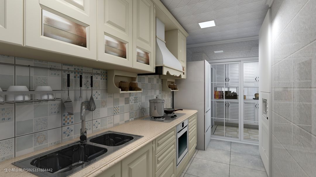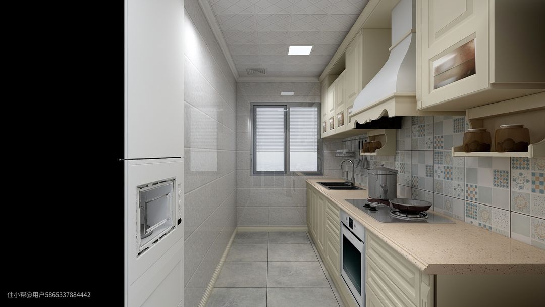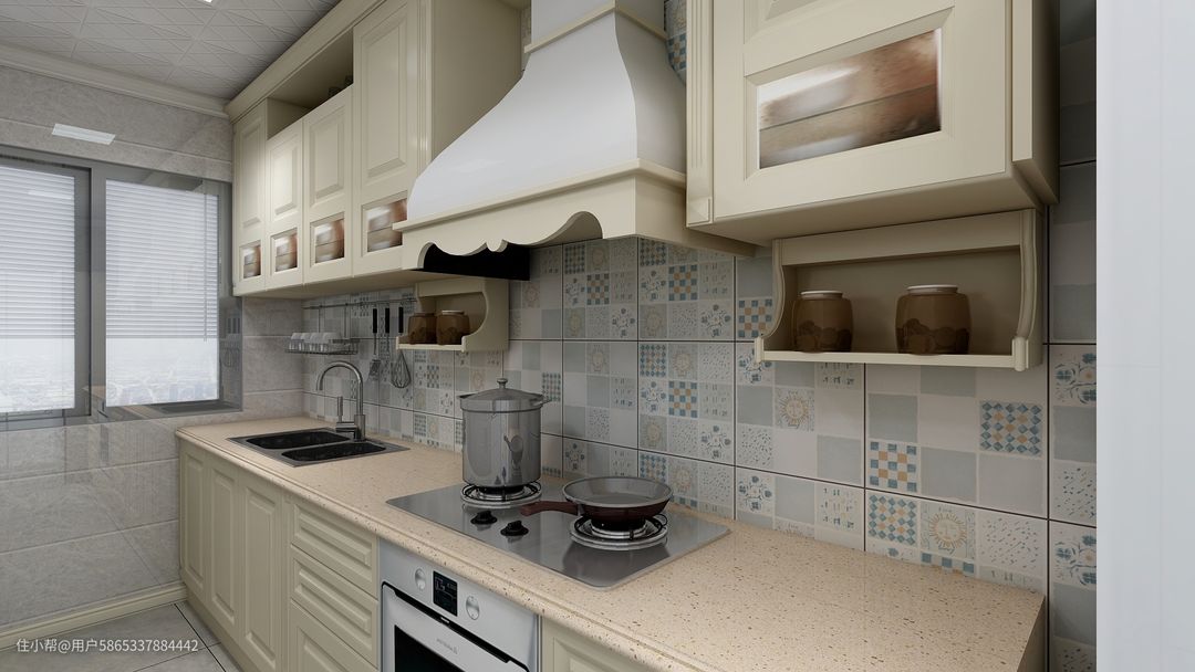 整体橱柜通体为奶茶色,有一种高贵感。瓷砖有复古的韵味,颜色较亮,使得橱柜看上去更加有立体感。