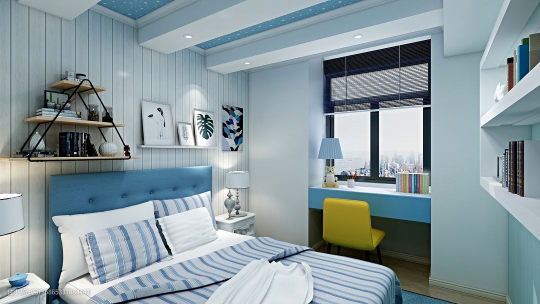 次卧采用无主灯设计,整体都是清新配色,待在这样的房间里我都不想出门了~