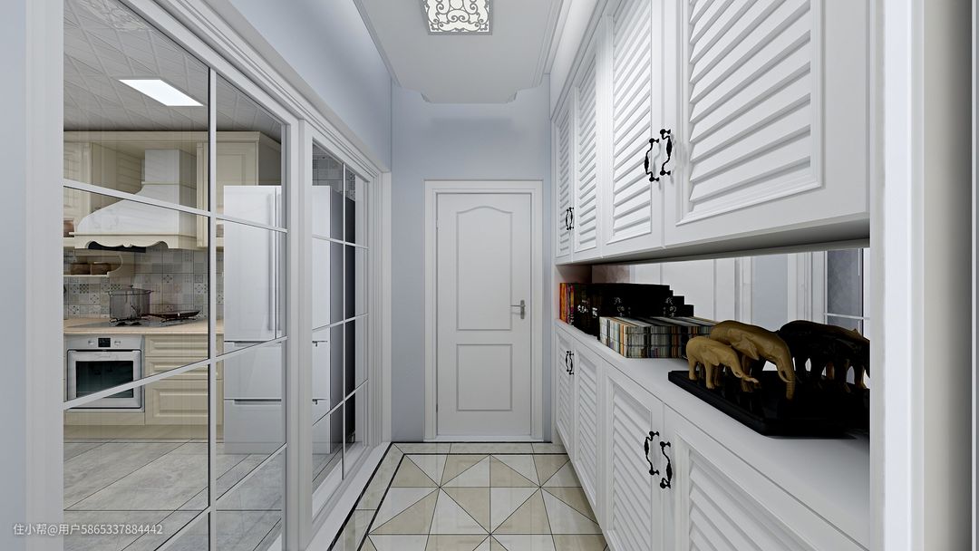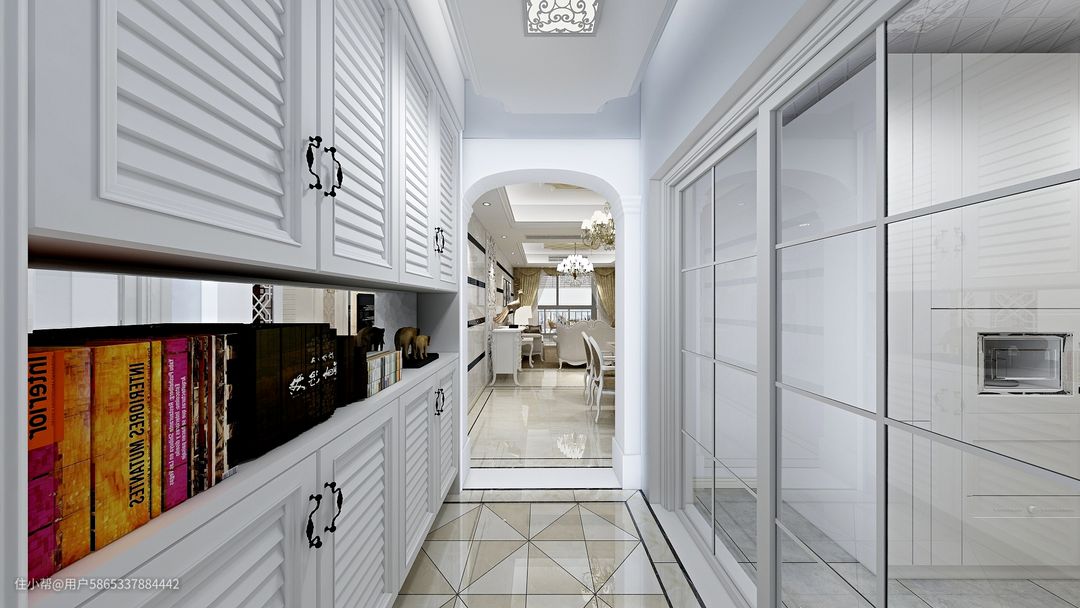 玄关处进门一排的收纳柜,收纳十足,拱门的设计超级有主人回家的仪式感~