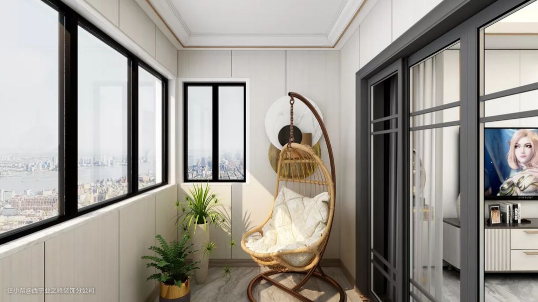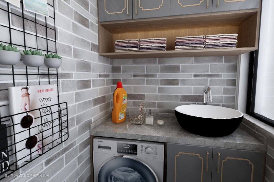 小阳台以实用为主,用于放置洗衣机和收纳空间的作用