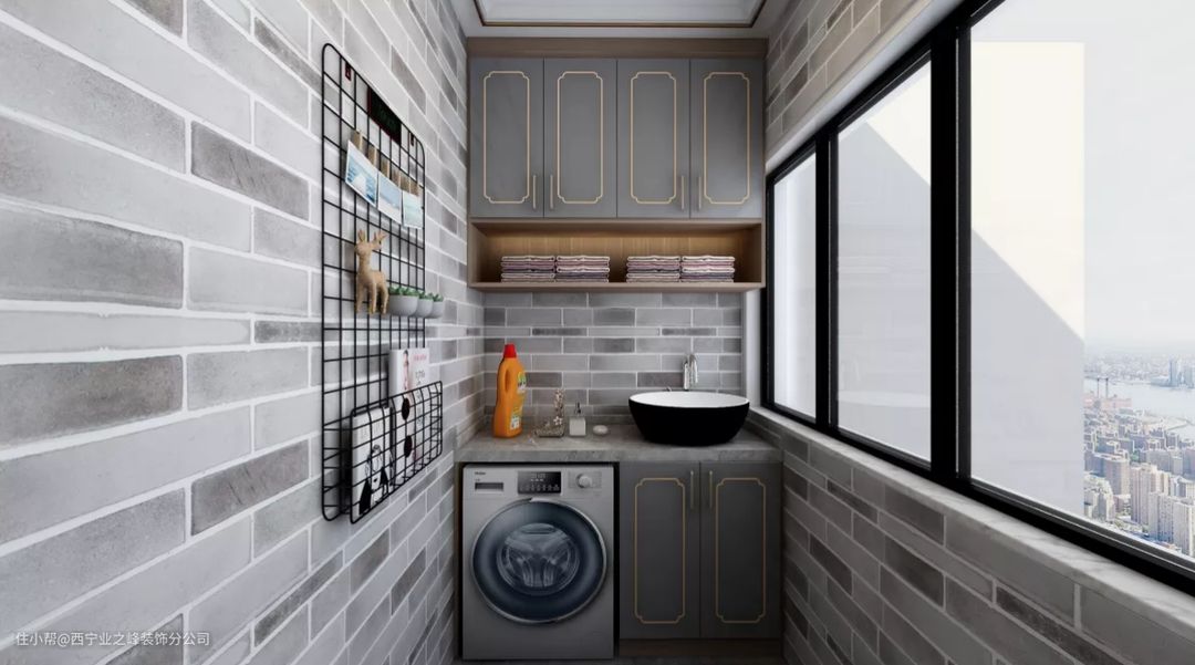 小阳台以实用为主,用于放置洗衣机和收纳空间的作用