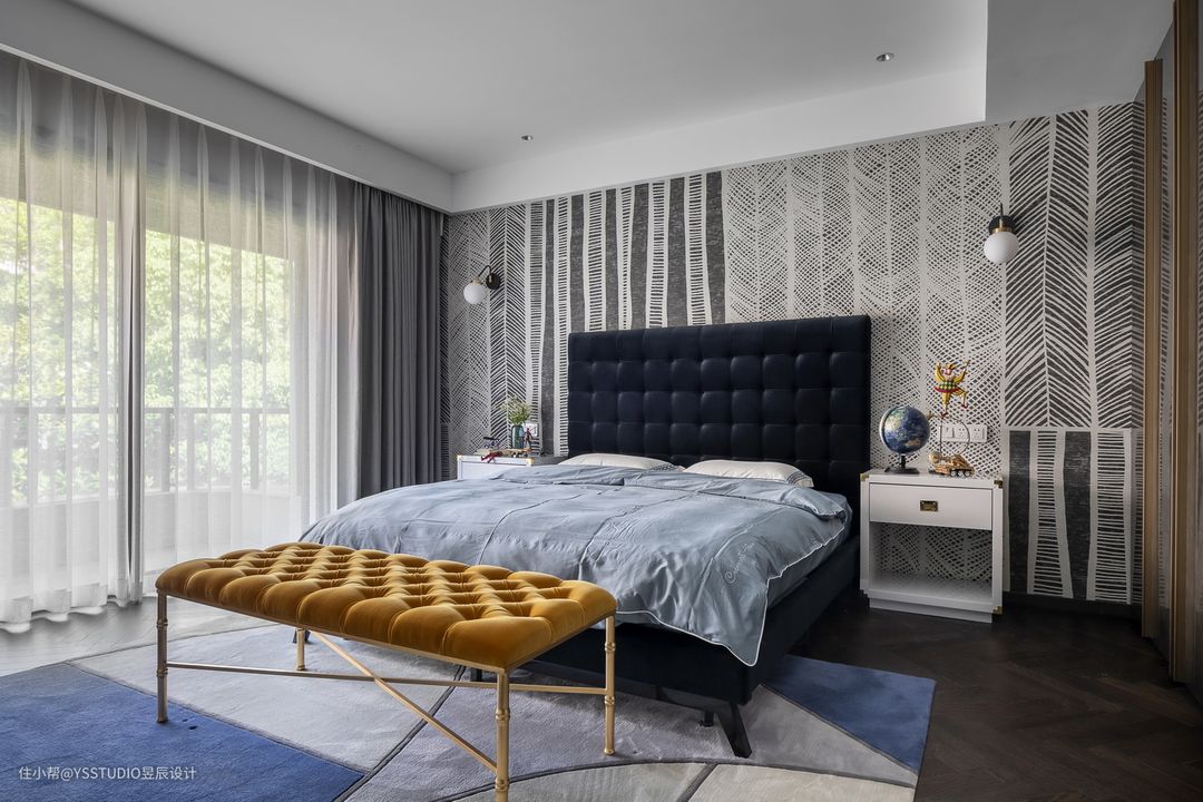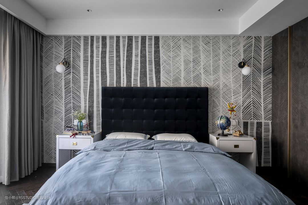 儿子房相比之下显得更加成熟低调 色调含蓄沉稳,墙面几何图案冷静 希望带给成长期的儿子更多的环境暗示