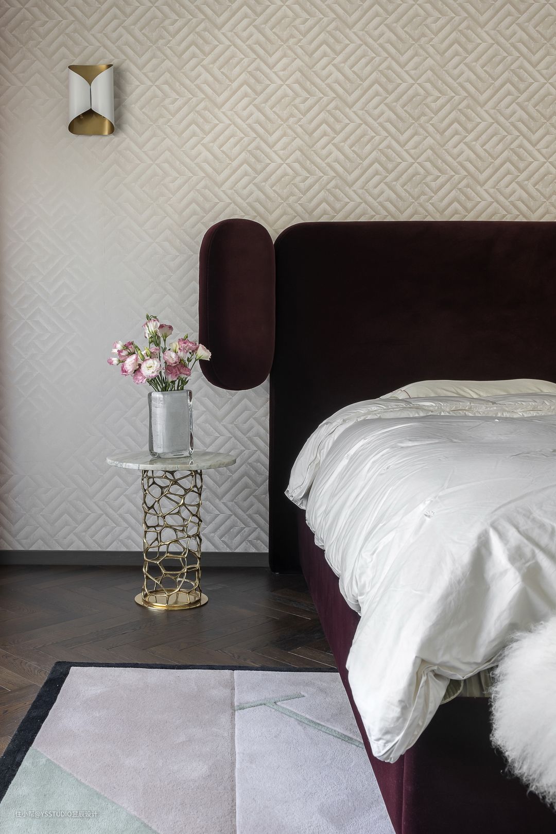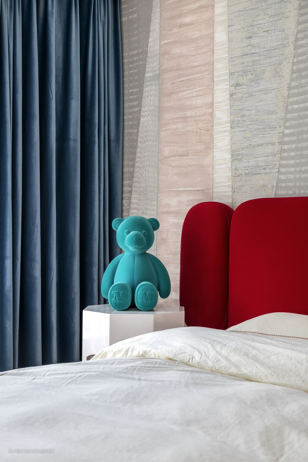 主卧无吊灯设计,更加通透无碍 西班牙艺术家Jaime Hayon创造了弧线优雅的耳朵床 与圆润床头边几一起,中和了建筑本身的几何线条 私密空间更加温和