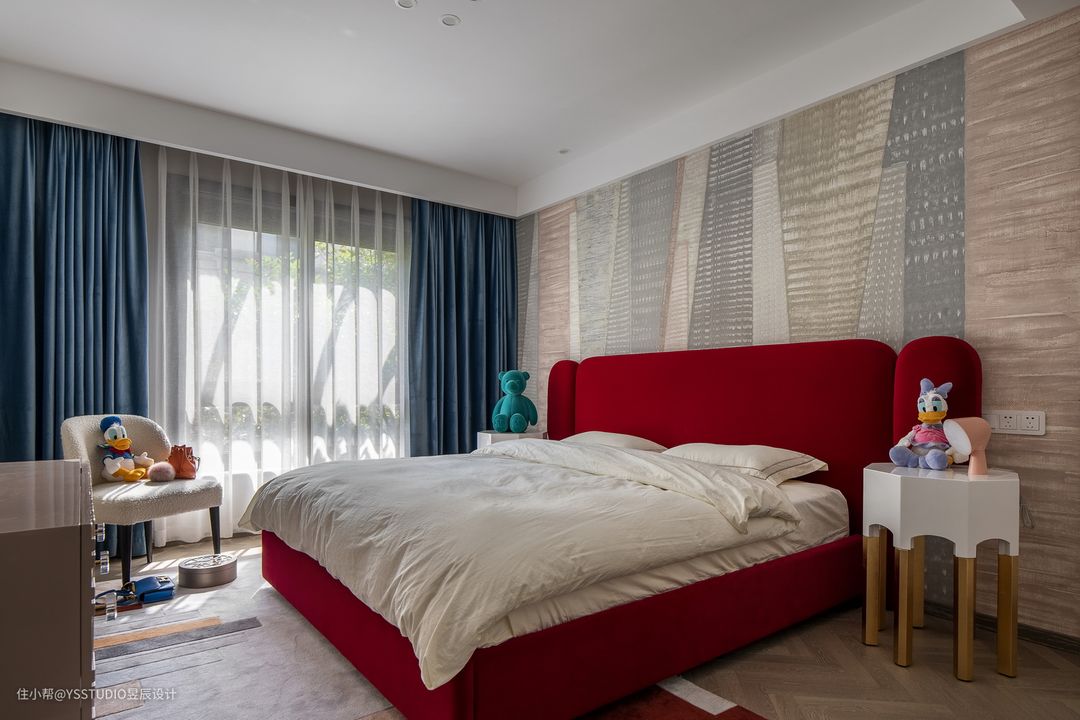 女儿房拥有和主卧同款耳朵床 正红色突出了房间主人的青春与热情