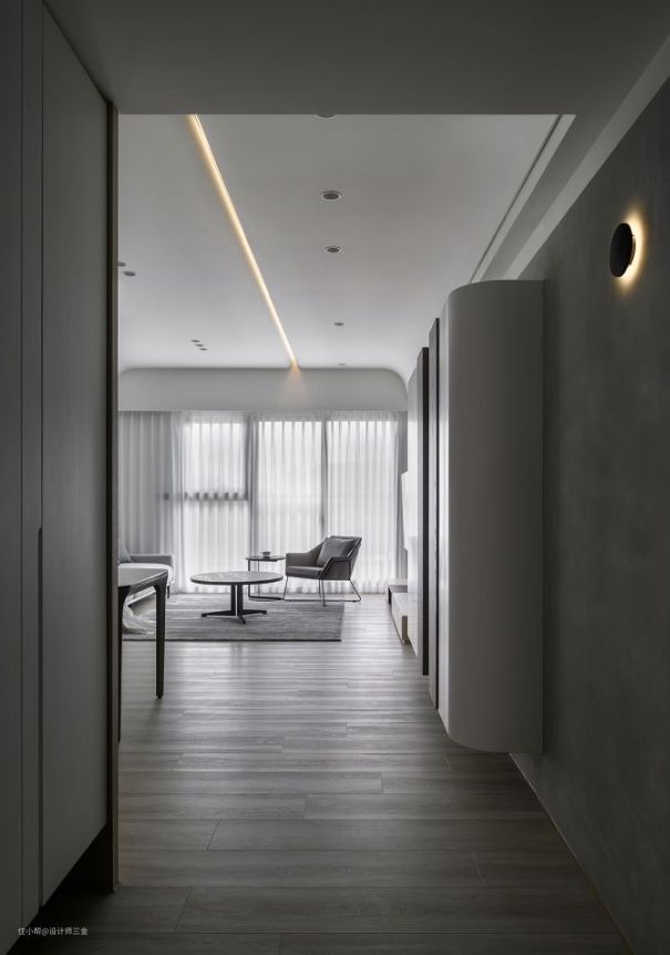 客厅无主灯设计让整个空间看起来非常简洁,特别适合极简现代风的家装风格。软装搭配也是超级的低饱和度的非常有居家氛围感~