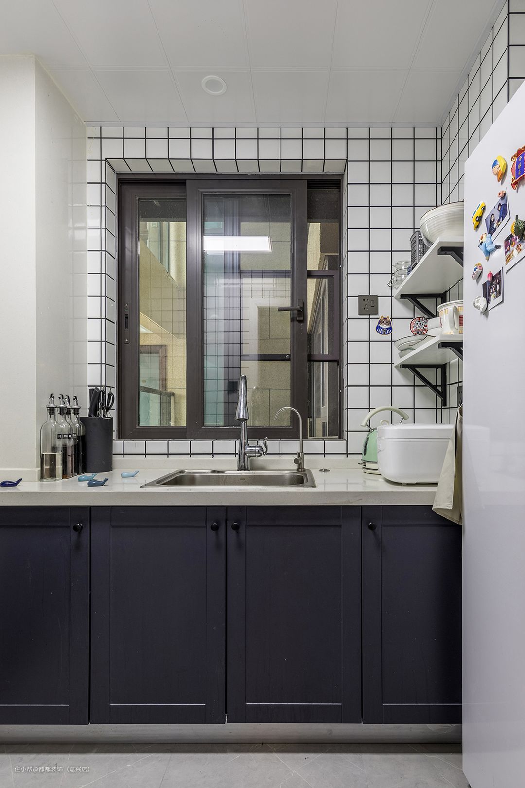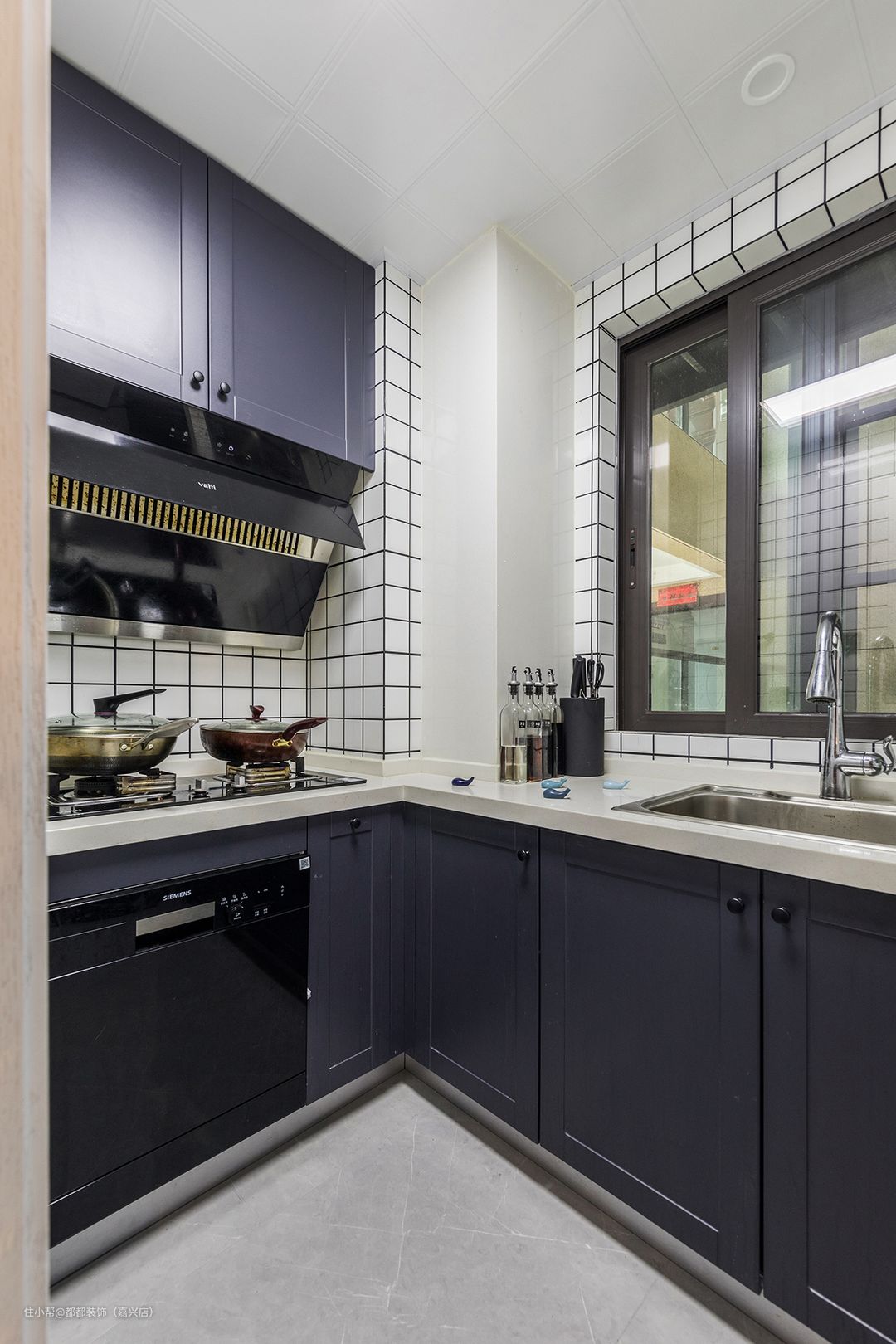 L型的厨房设计可以增加收纳功能,藏蓝色柜门耐看又耐脏。#橱柜经验大全