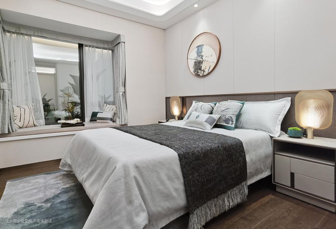 次卧的装修质朴大方,同样延续了中式古典的风格,当然也少不了实用与颜值并存的飘窗设计,平时可以坐在飘窗上看书、休息,让生活更加惬意舒适。