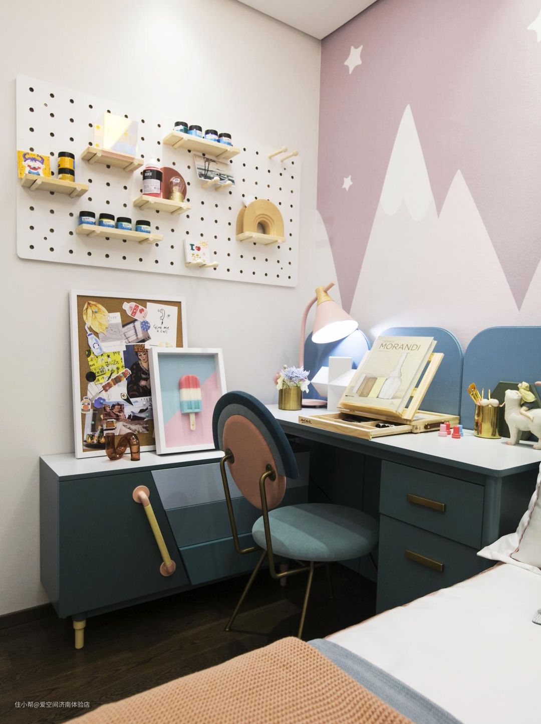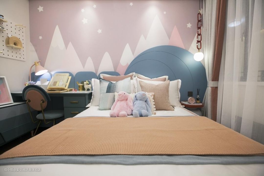 女儿的房间充满了少女气息,无论是床上可爱的玩偶还是墙上的梦幻装饰,都符合小女孩心中美丽可爱的公主房氛围感。