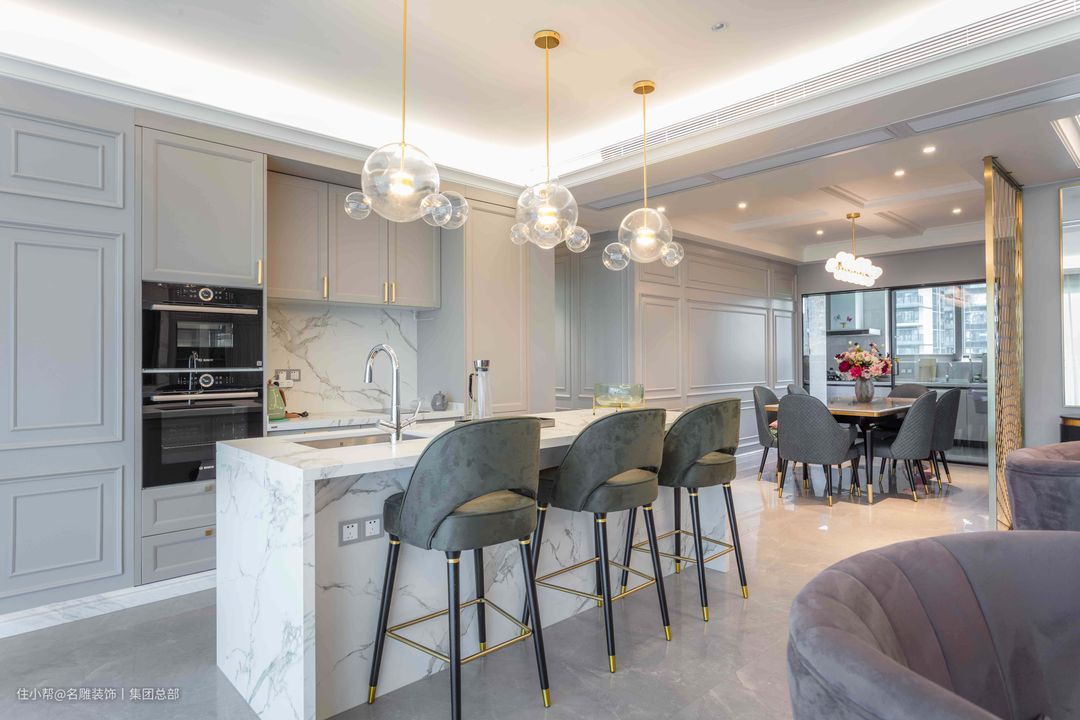 西厨作为整个家庭的最中心,也作为客厅空间的互补空间。西厨为中心,彰显了客户生活节奏和品质的一个提升,更多的是享受生活。牛排,红酒,伴随着温婉 优雅的音乐透过墙壁和天花,从四面八方围绕而来。更具有烟火气息的中厨则放在了最远端。