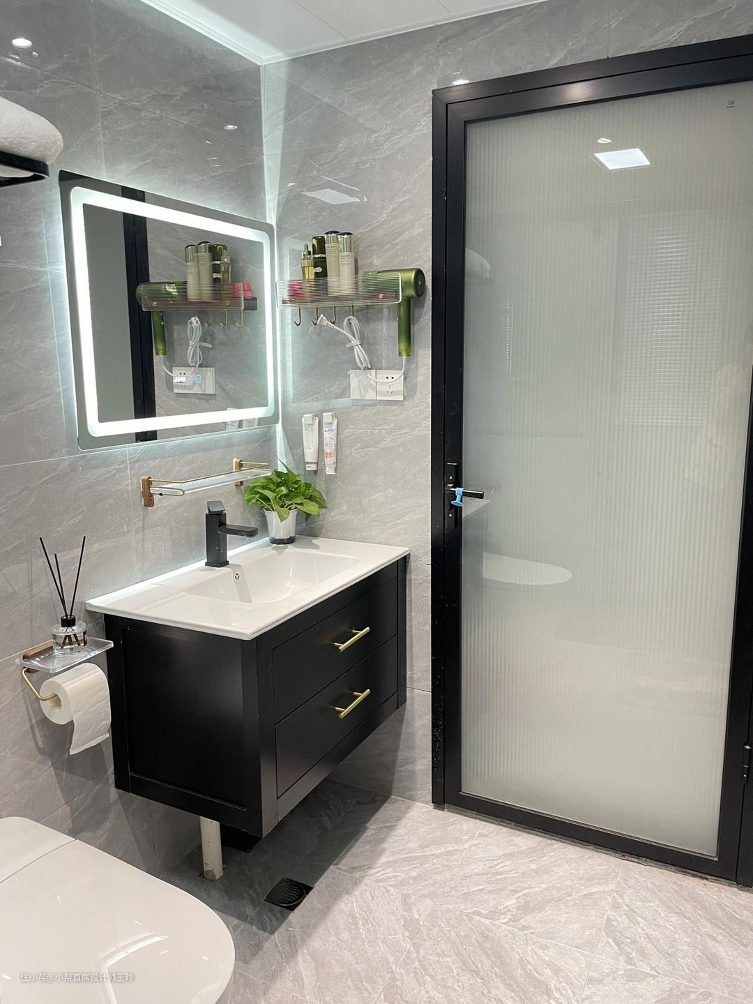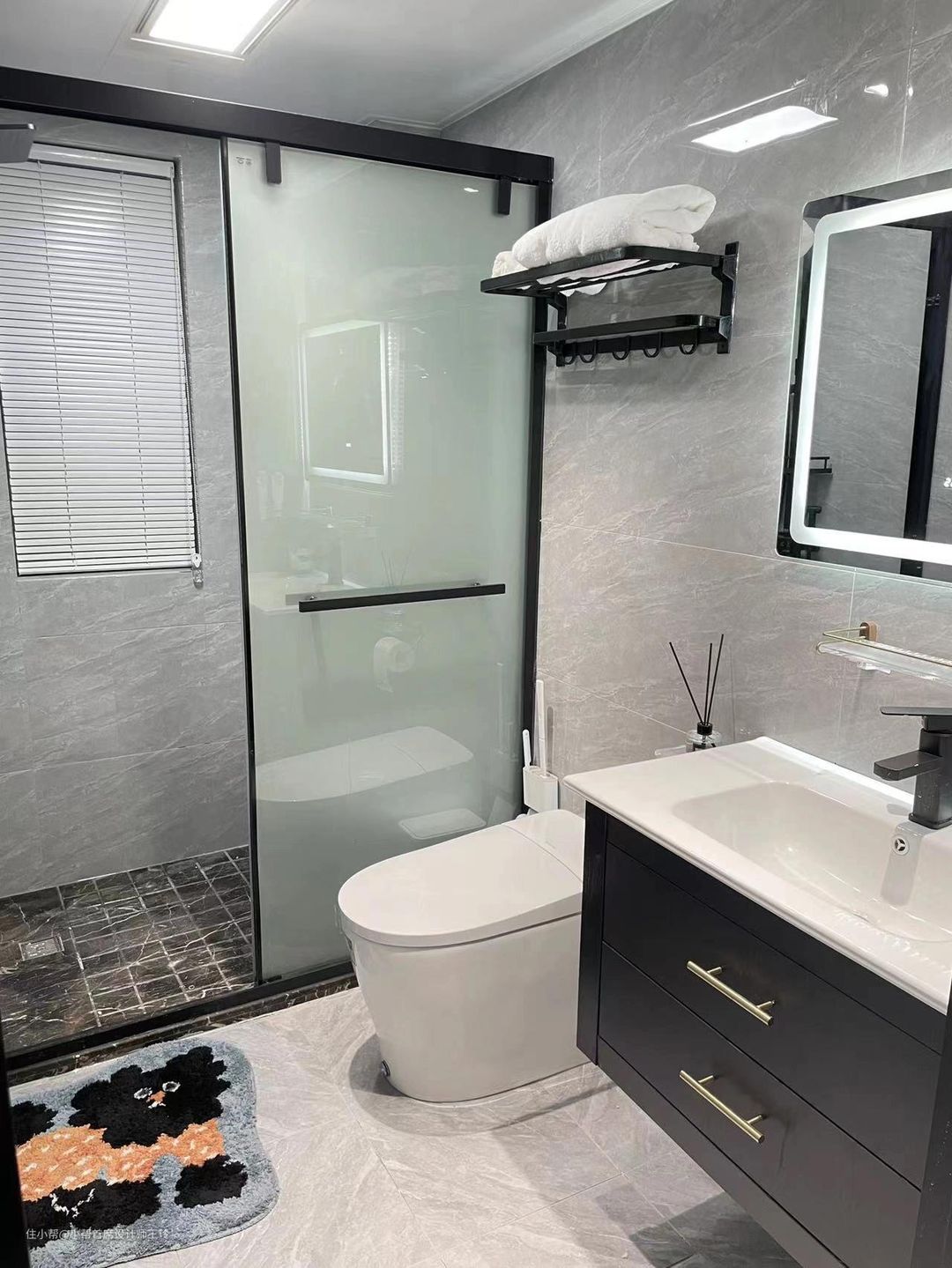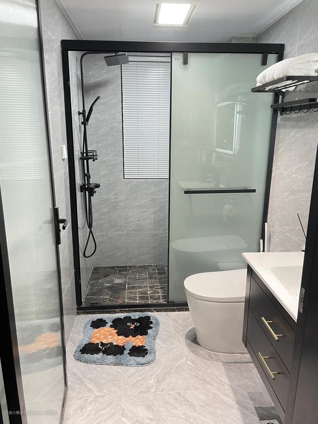 不足4平方黑白灰简约卫生,长方形的,做了干湿分离,整体色调黑白灰经典耐看不过时