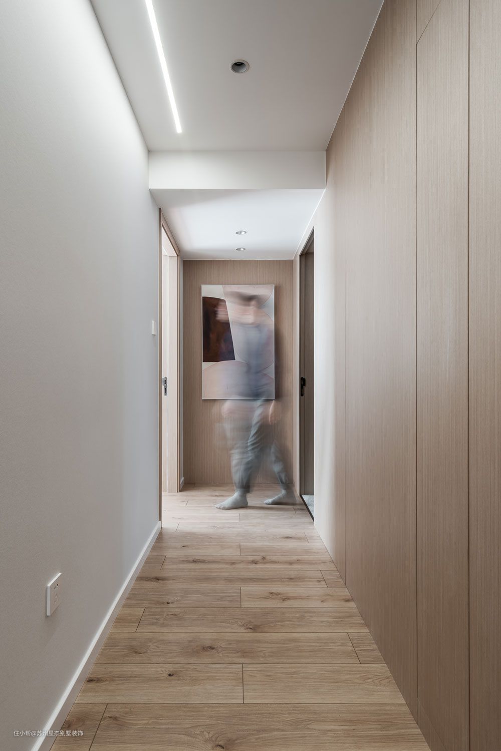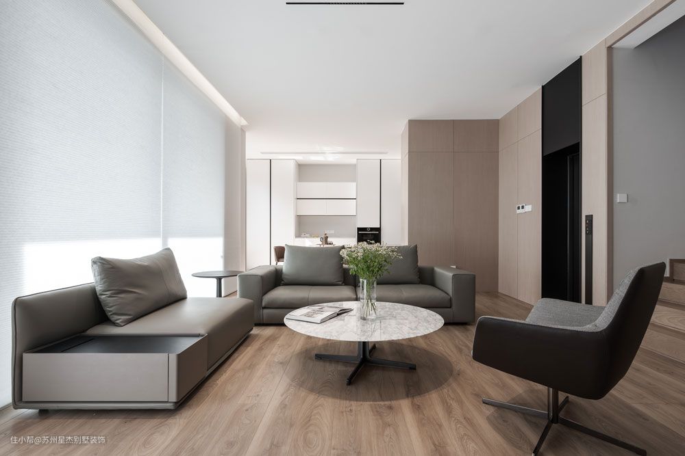 本案通过安静色系营造一种自然朴质又富有气质的极简设计,木色与黑白灰色调的融合,赋予空间无限的想象,同时兼顾艺术及品味,让人感受到家的温暖,真正体验舒适的生活氛围。