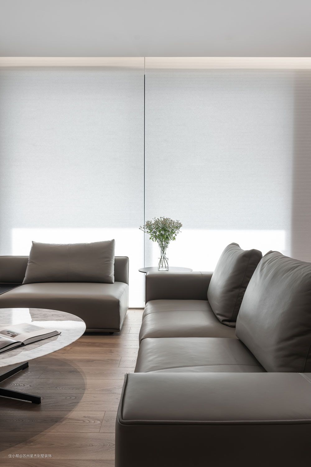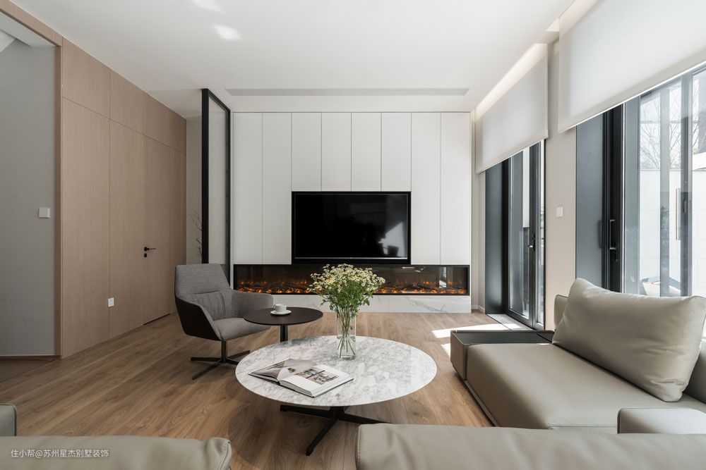 客厅大面积的落地窗设计,在阳光的折射照耀下,温润了空间温度,也提升了身心的舒适度。生活真好,干净的风吹过你,开花的云爬过山阴。