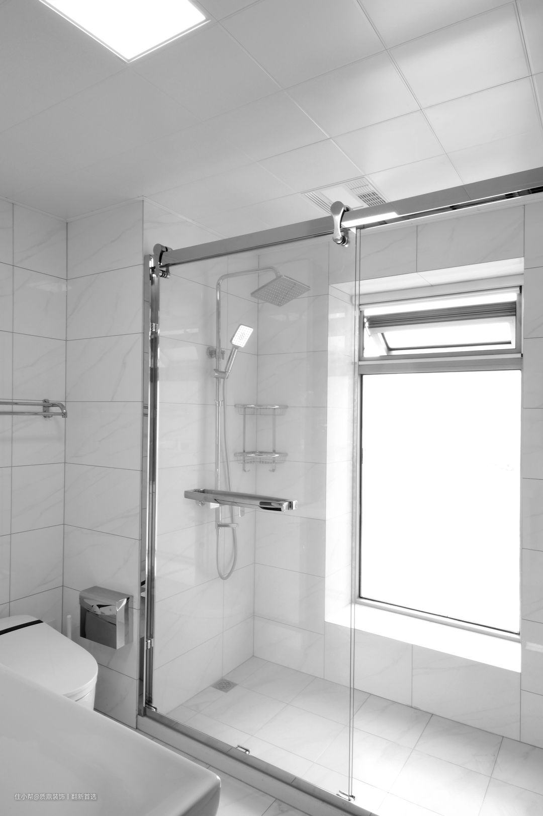 卫生间采光良好,采用现代风格设计,整体大气,细节流畅,干湿分明。