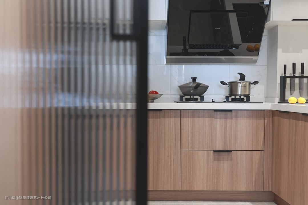 厨房安装了玻璃移门,以此来扩大空间感,同时也隔绝了厨房的油烟气体。