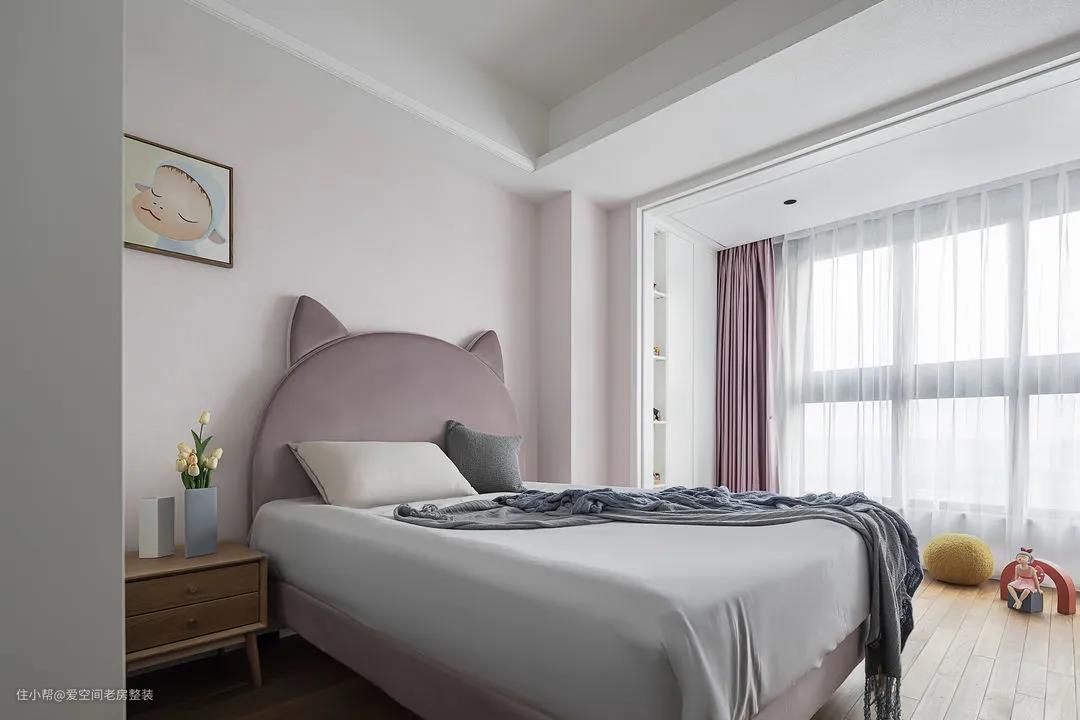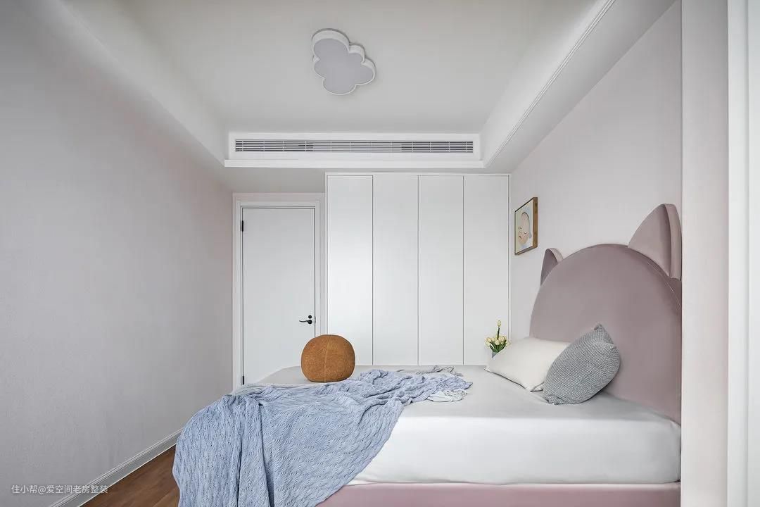 粉色,每个女孩从小到大都喜欢的颜色,打造一方梦幻的小小世界,度过珍贵的童年时光。 与阳台打通后,扩宽了儿童房使用面积,希望孩子们的小世界一直被阳光和幸福笼罩。