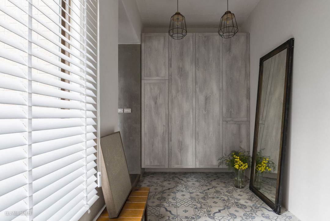 客厅除了空旷、简单之外,最有特点的就是裸露的水泥灰墙砖与原木色的搭配,营造出原始质感的工业风,一套复古灰色布艺沙发,加上旁边一些绿植的点缀,给酷酷的空间注入一丝活力。