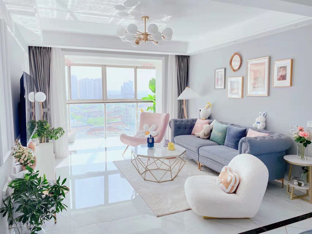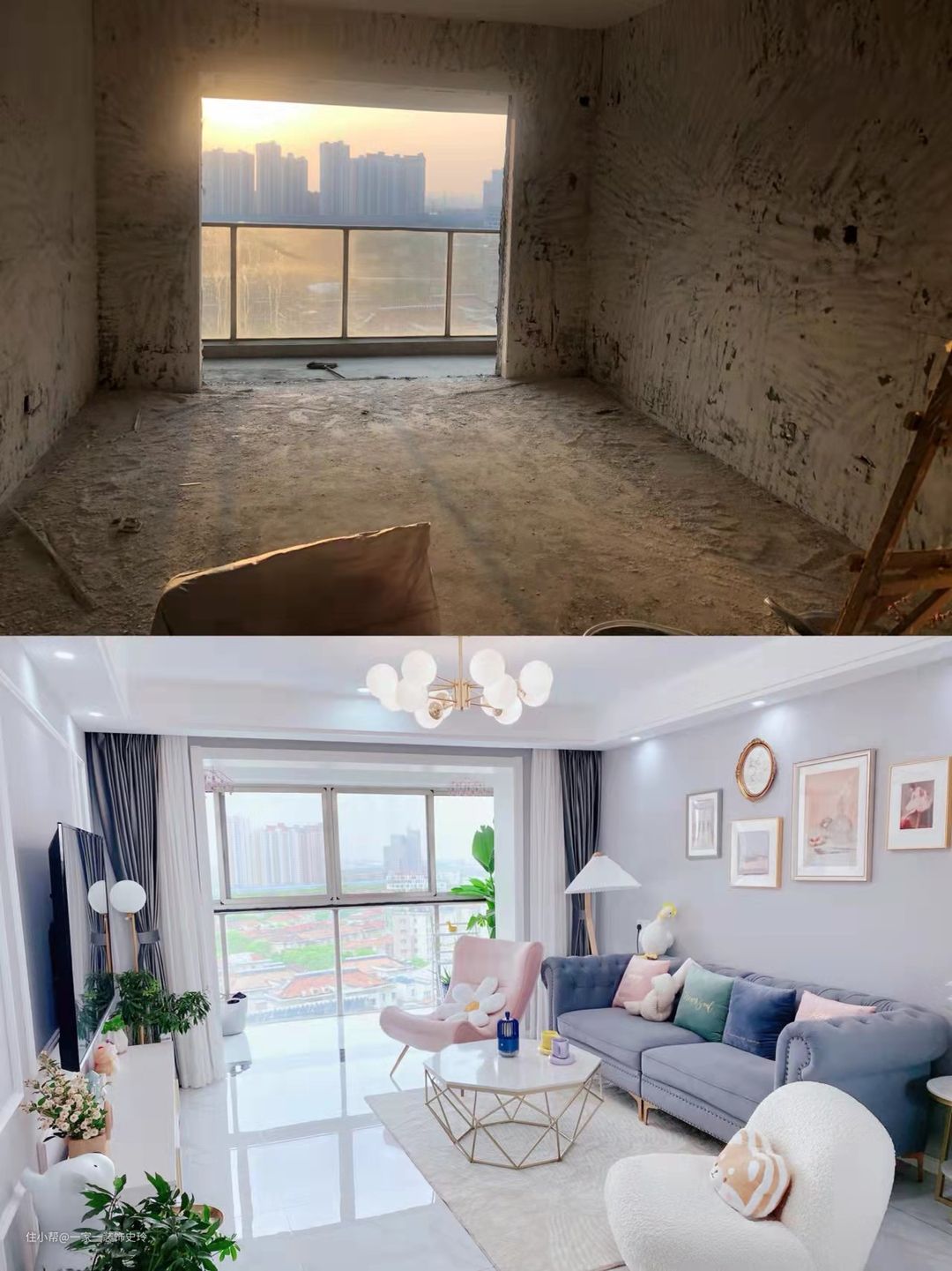 客厅完工实景对比图