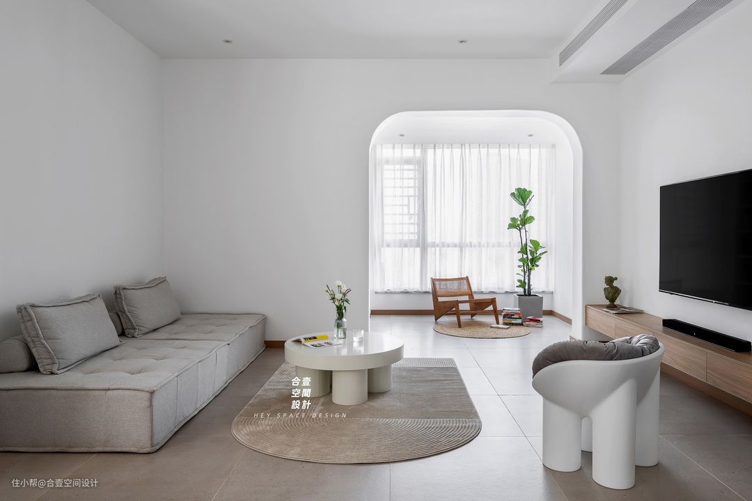 @合壹空间设计:极简的空间设计,让大地色系的朴实自然在此处融入的刚好,即便没有丰富的色彩包裹,空间的流畅感也能让看似简单的大白墙在这里也有了不一样的魅力。