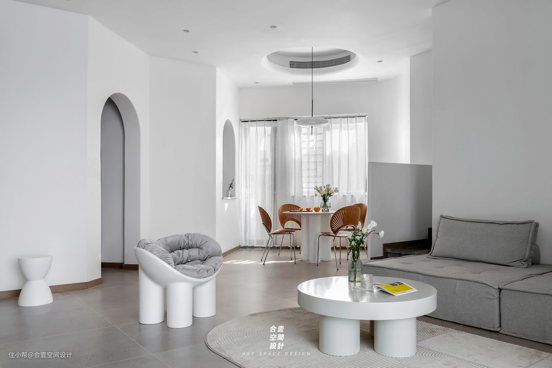 @合壹空间设计:于此窥探岁月的温柔一角,或是厨房中为三餐忙碌的身影,或是餐厅内一家人围坐于此的和谐温暖。圆弧带来的温柔生动,正如这里所拥有的氛围,融洽美满。