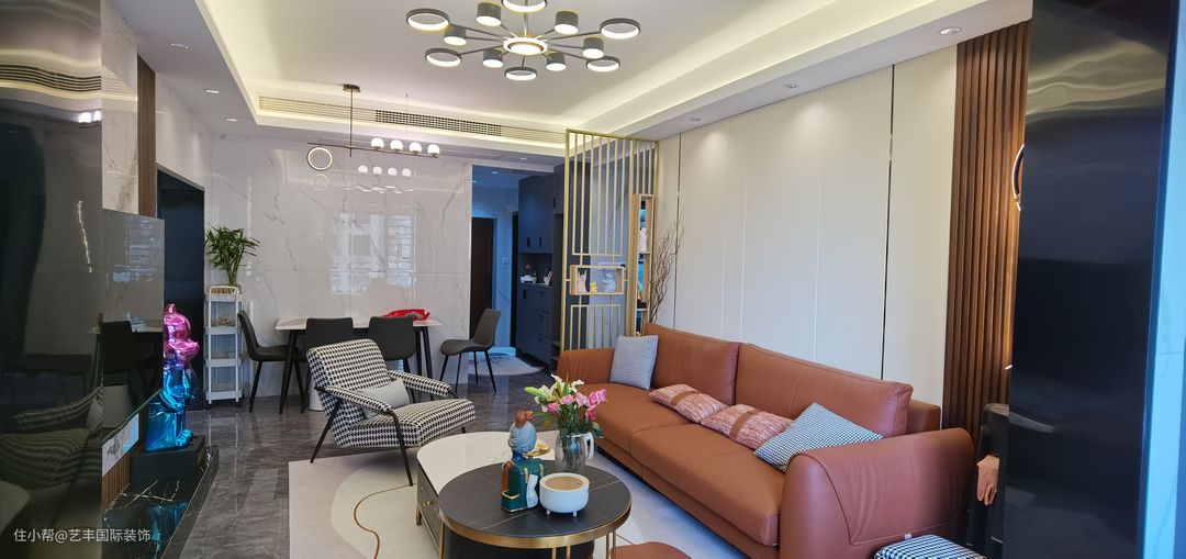 1、一家4口居住,3个房间都保留,物业允许加建了一个卫生间。空间不大,但是整体很温馨! 2、现代轻奢风格,业主是一对年轻的夫妇带2个小孩居住!