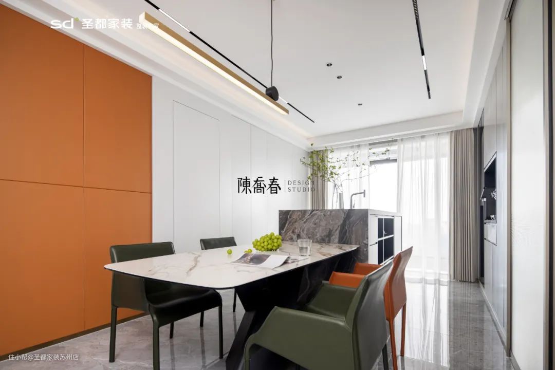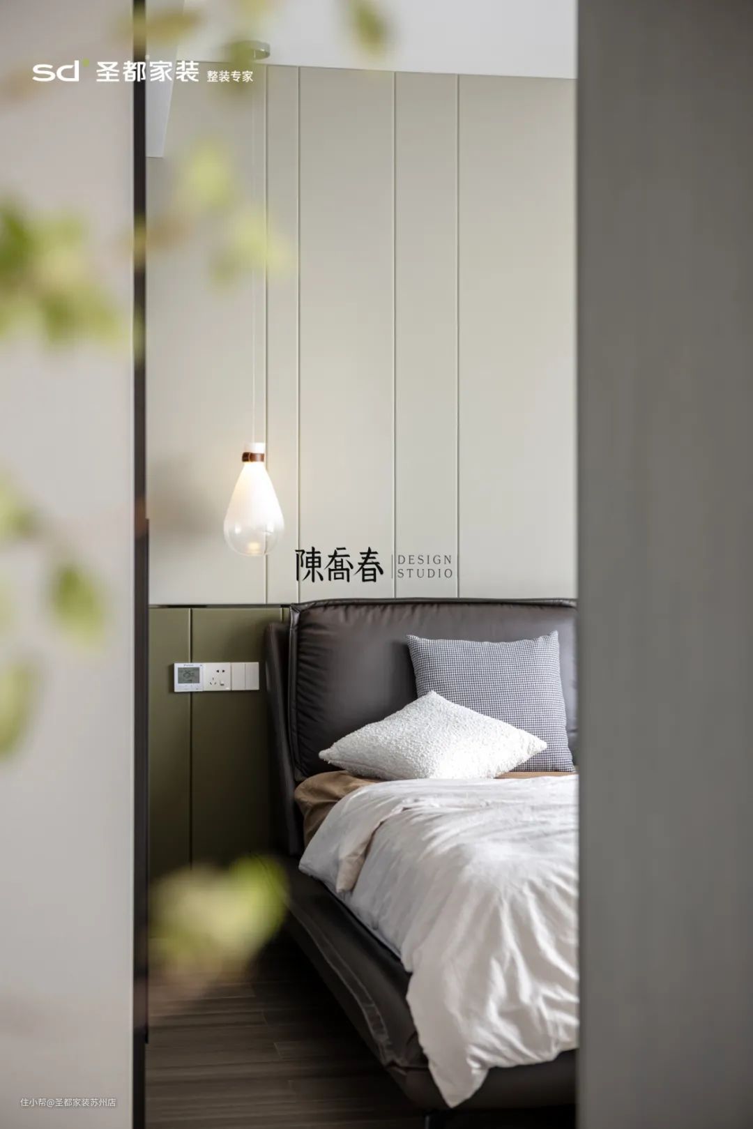 由于长辈都住在本地,所以只需要保留两个卧室,整体空间氛围以舒适为主,营造出暖意和质感。