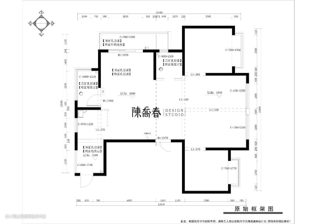 项目地址 :宁波 · 青秀澜湾 项目面积:131㎡ 户型:3室2厅1厨2卫 项目风格:意式轻奢混搭 设计师:李飞 整个户型其实还是比较方正,空间也非常宽敞,房梁过多,在后期设计时要合理规避掉,或者用吊顶装饰;格局比较固定,原有的墙体都是承重墙无法改动;设计方案将四房改为两房,客厅放到南边采光更好的两房位置,打通区域。 原始户型图↓