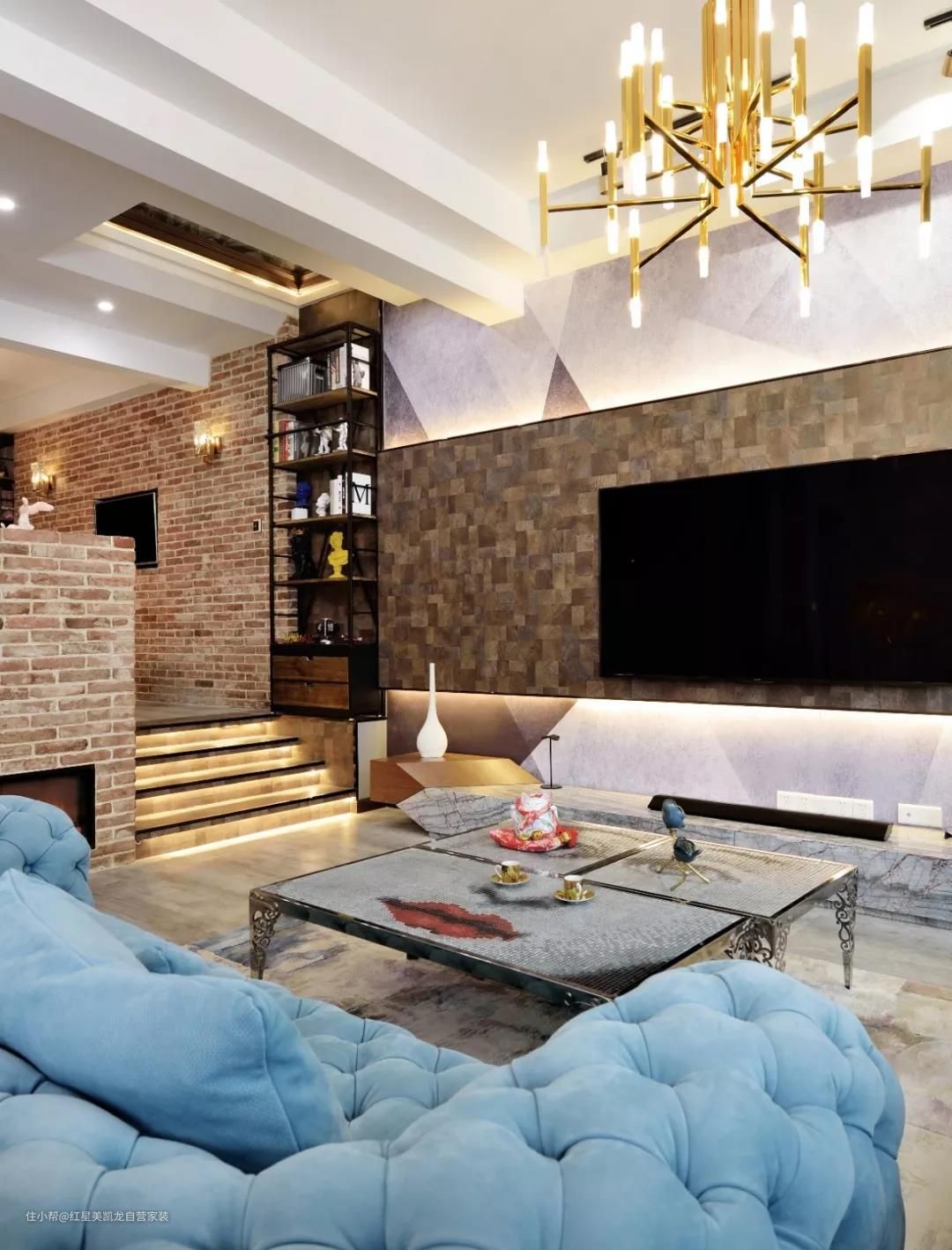 亮点:下沉式的客厅,空间层次鲜明;红砖与格状木饰面上墙打造纯正工业风,细心做了表面清漆处理,抚摸倚靠均无碍。