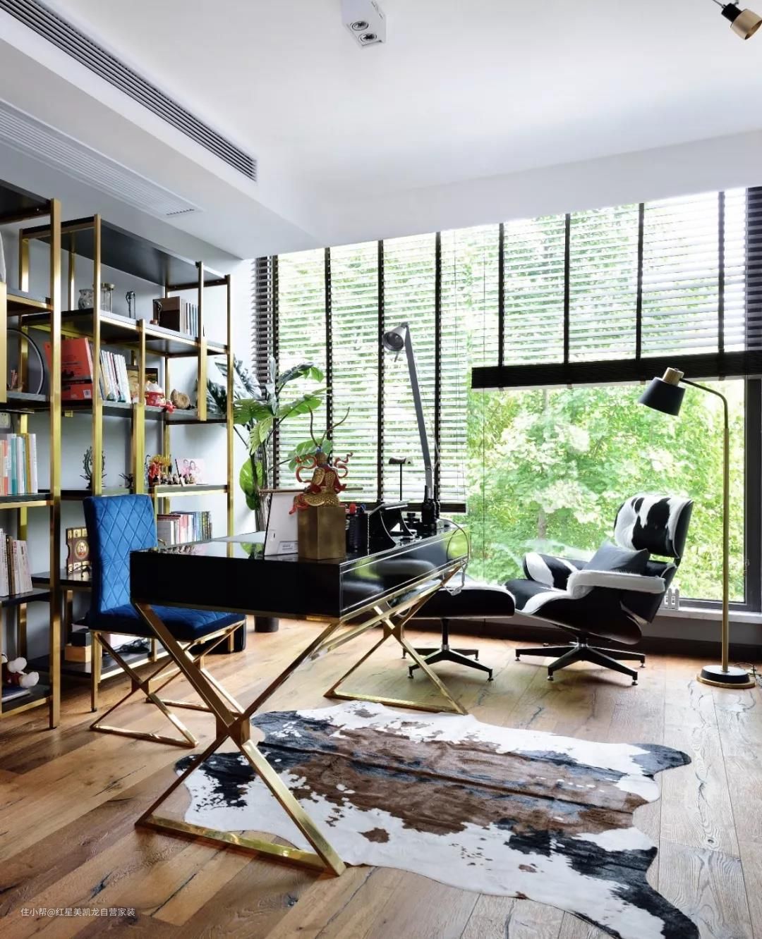 亮点:开放式书房,书桌与书架也采用了镂空的设计,空间布局干净利落。