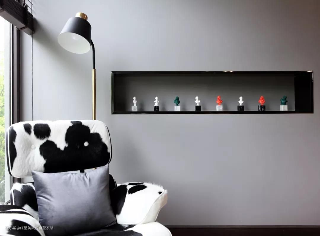 书房设置了整面落地窗,借景花园,情境与意境完美契合。在实墙挖凿的壁龛,嵌上不锈钢套框,在略显枯燥的水泥灰墙体上,多了丝生动的设计,又充分利用了空间。
