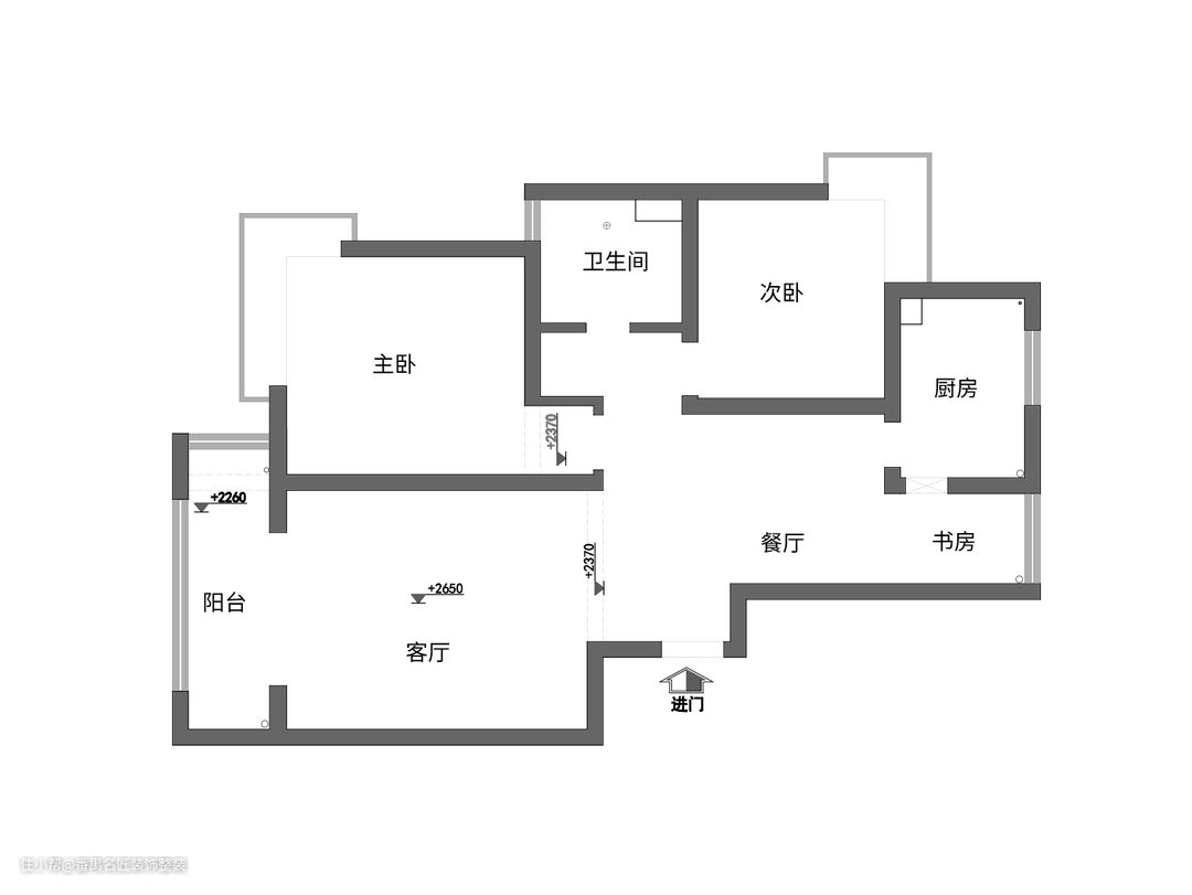 改造后的户型解析: 1.去掉主卧门口部分空间,卫生间设置成干湿分离,扩大走廊空间。 2.去掉部分次卧墙体来放冰箱,次卧调整门口位置,增加收纳空间。 3.北阳台的空间打造成书房,作为工作学习的地方。