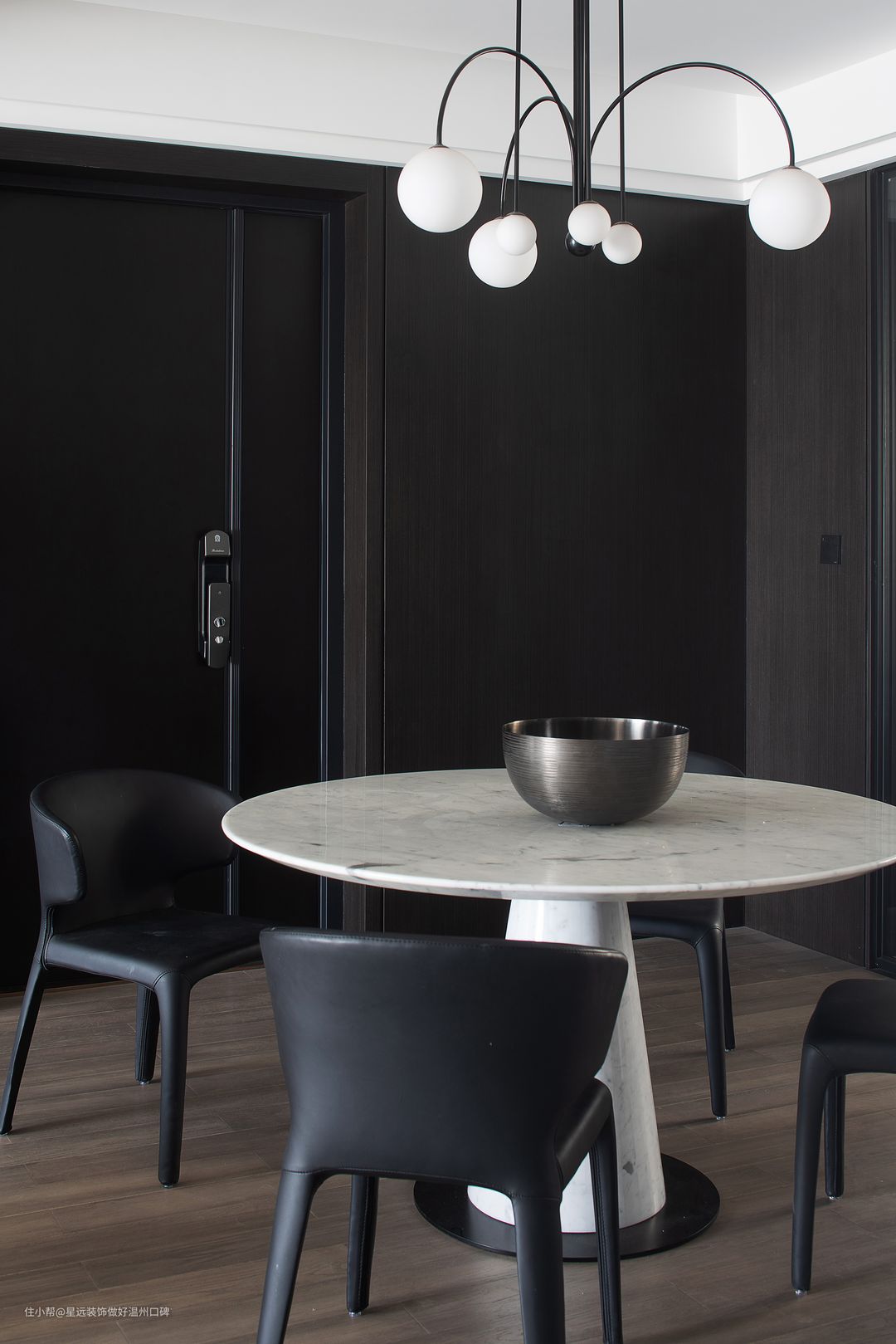由于餐厅这里的宽度有4米,所以在东面墙体增加餐边柜,来增加生活上的实用性和收纳。